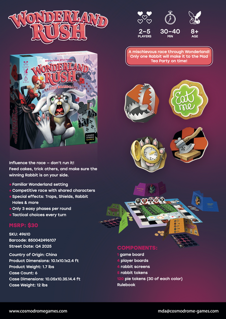 Besides ordinary cakes, you have a set of special effects on your hand which you can use to make the Rabbits’ run easier or harder. It’s a tough race: Rabbits will get trapped, hide behind Shields, avoid the Queen of Hearts, fall into Rabbit Holes, and look at their Pocket Watches to run faster.