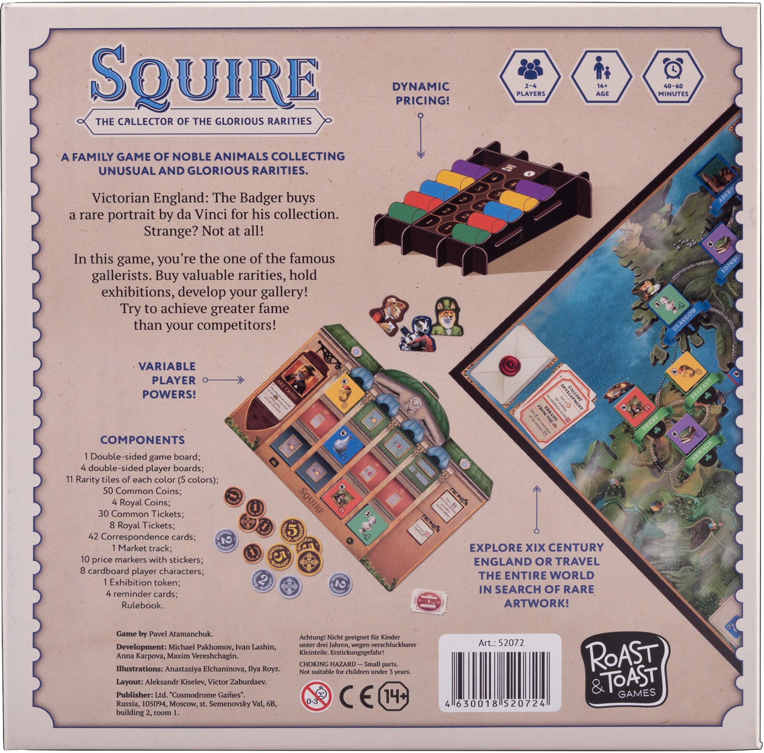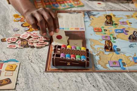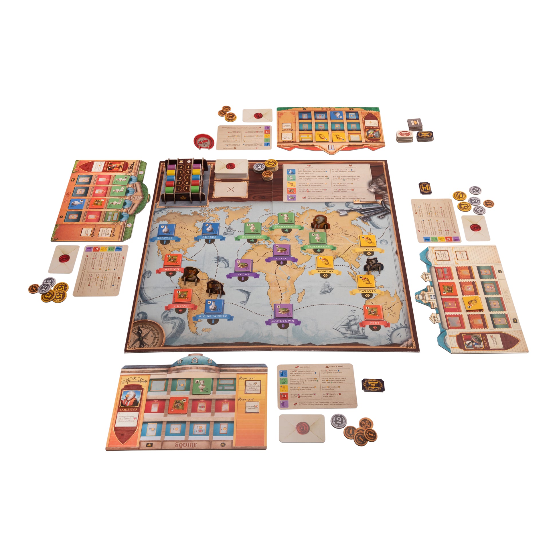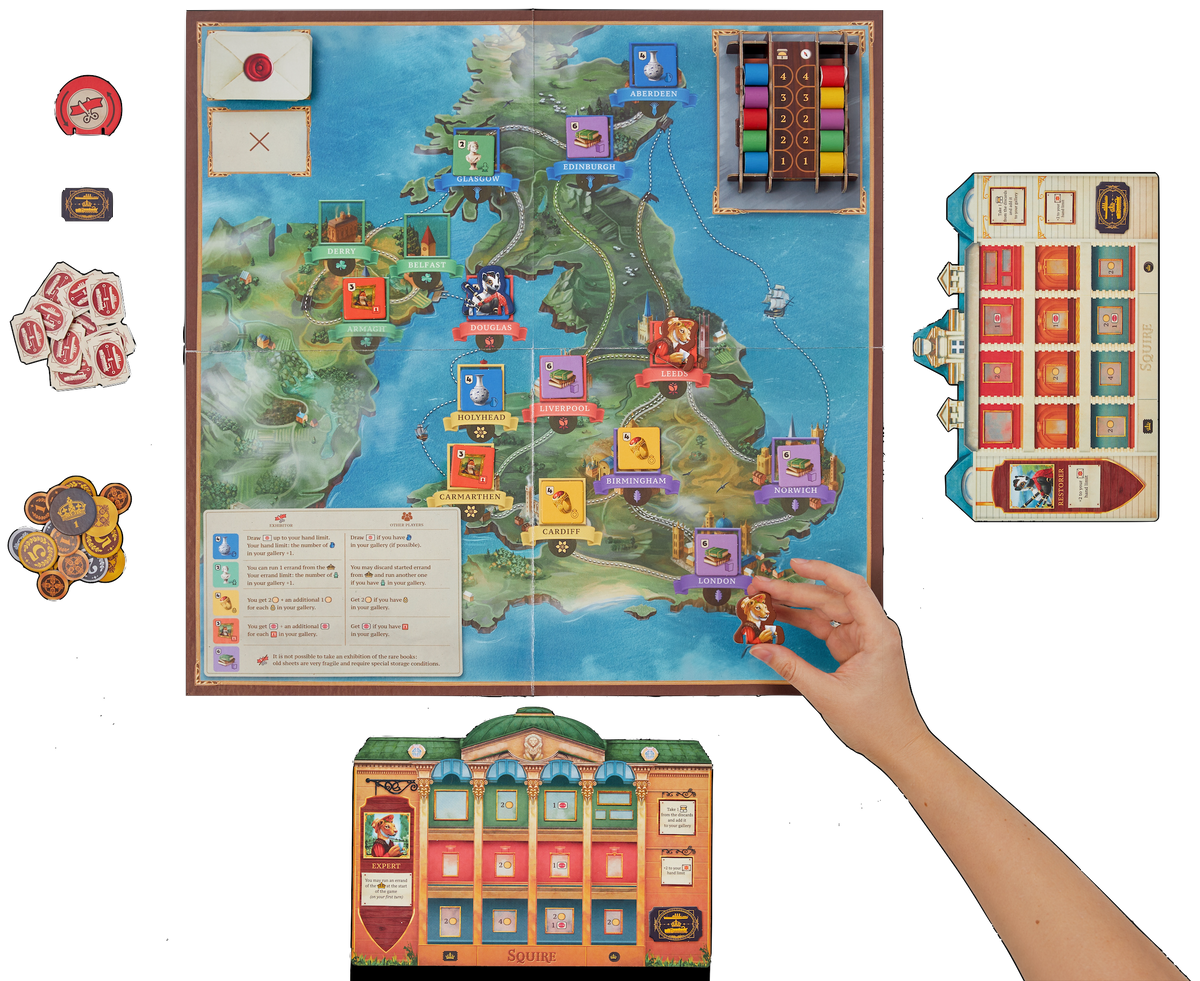 In this strategy board game, you are an art collector traveling the world to buy various artifacts for your gallery, sell art pieces to the market, and organize exhibitions. You are a professional who knows everything about constantly fluctuating prices in the art market, so you can also influence them.