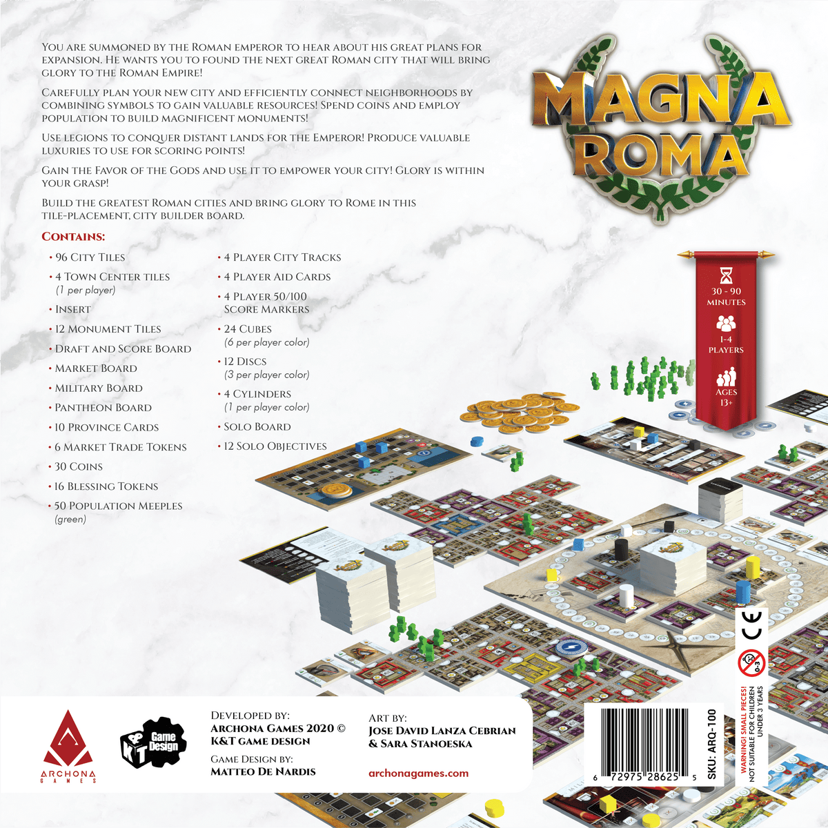 Build the greatest Roman city and bring glory to Rome in this unique tile placement, city builder board game with an innovative resource production system.