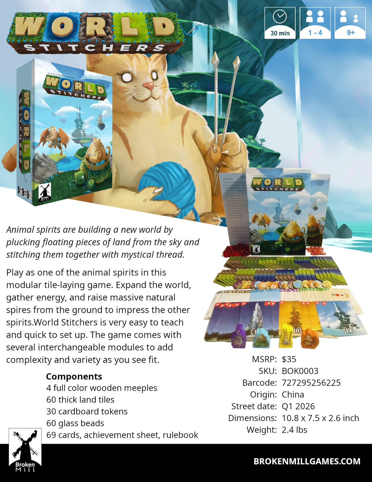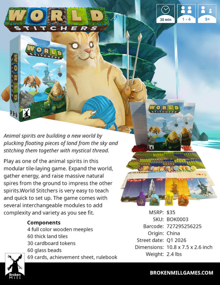 Animal spirits are building a new world by plucking floating pieces of land from the sky and stitching them together with mystical thread. These powerful spirits are the World Stitchers, and even though they are working together to create a new world, only one of them will have the honor of naming it.
