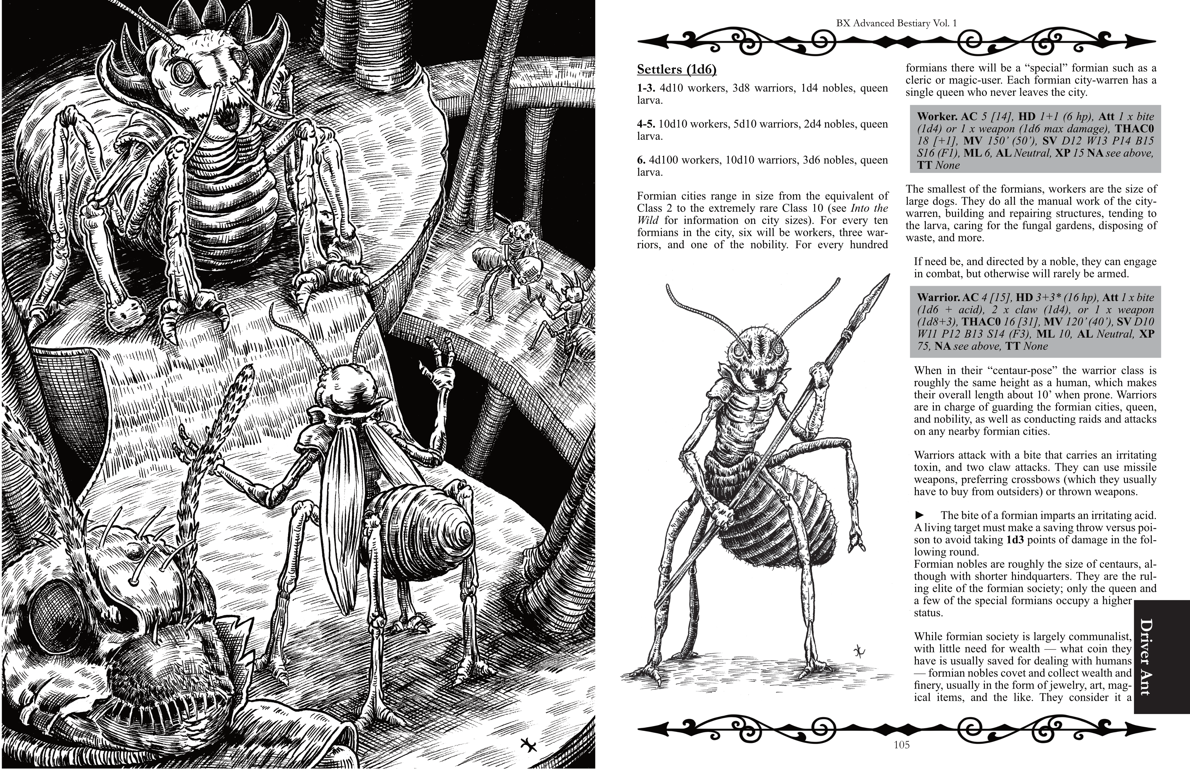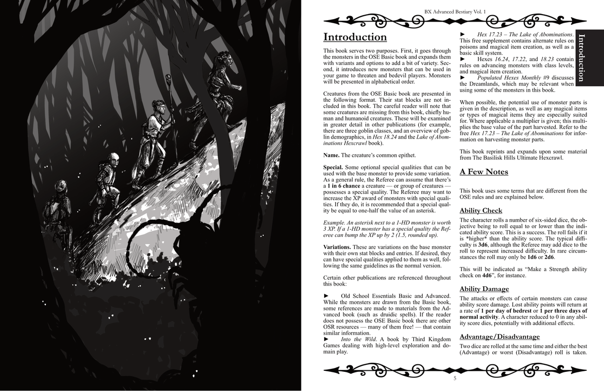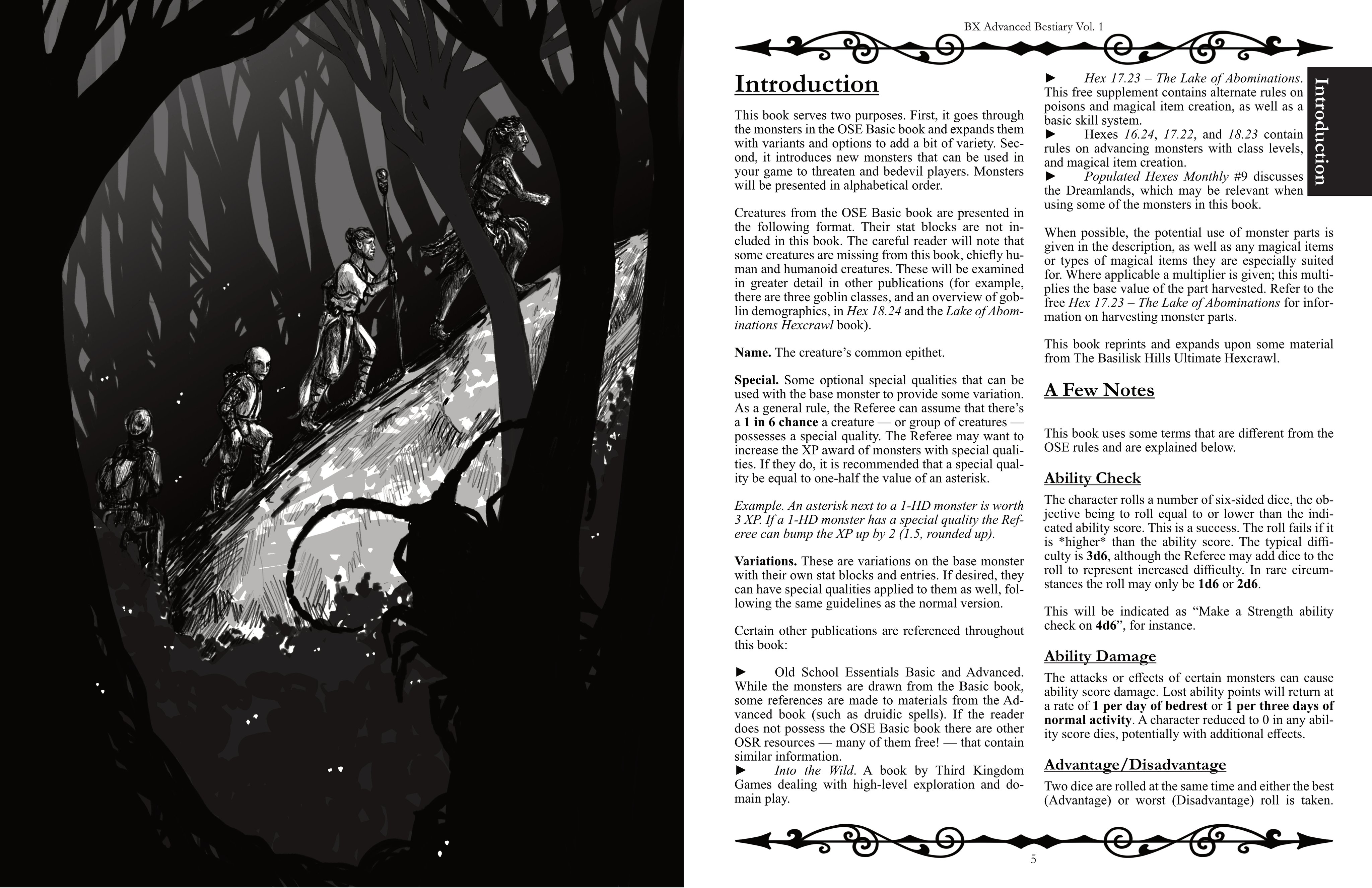 The BX Advanced Bestiary, Volume 1, takes the monsters in the OSE Basic book alphabetically and expands on them, offering variants, special abilities that can be added, and flavor and background to make them more interesting.