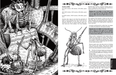 Purchase includes the book, an 8-1/2 x 11 book with sewn binding, ribbon bookmark, and black and white interior. There are over 70 new monsters included in this book, each illustrated.