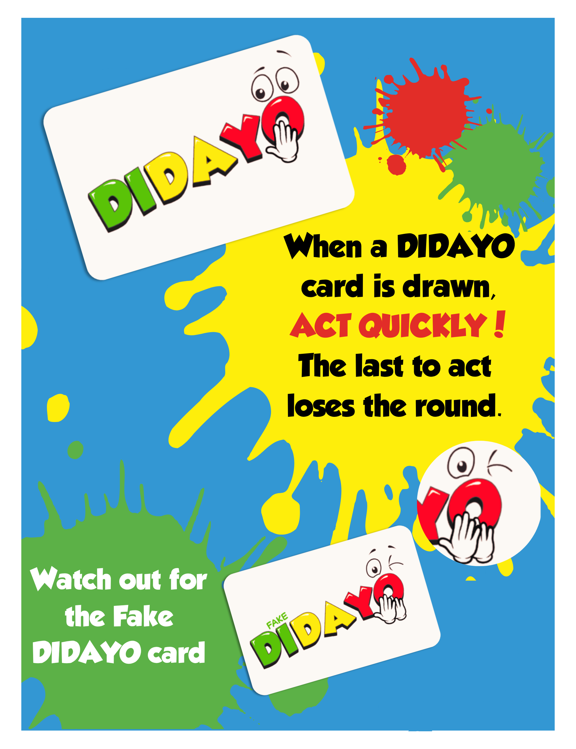 Just when you think you've got the rhythm, a DIDAYO card appears and everyone scrambles to clap and slap. Better not be last, or you'll regret it! Oh, and those devious Fake DIDAYO cards? They're lurking in the deck, waiting to trick the unwary!
