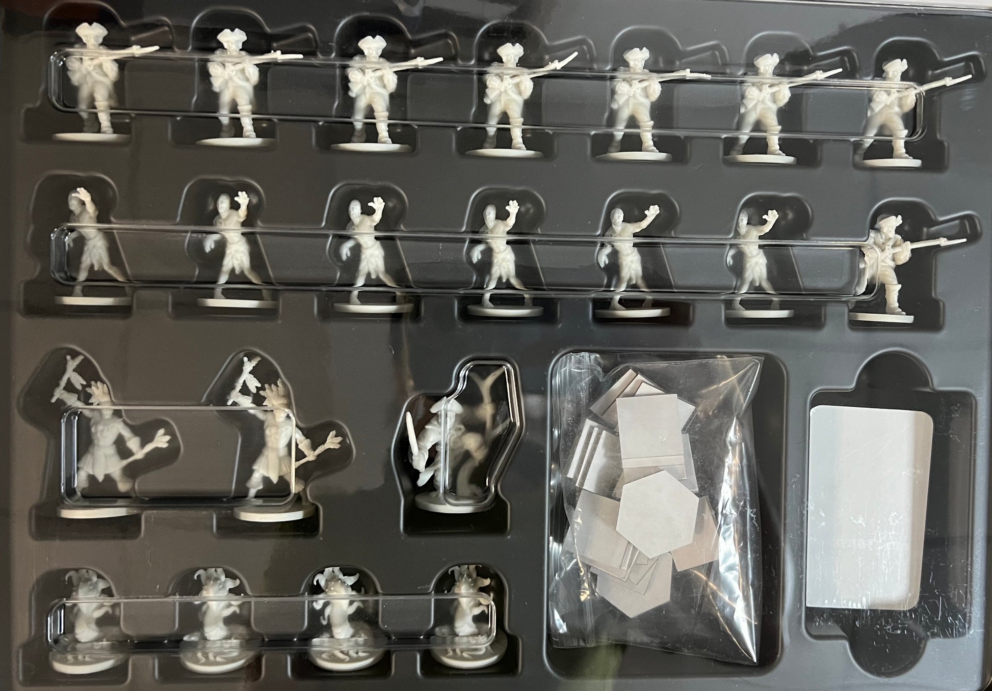 - 21 Miniatures: 2 Shamans, 6 Undead, 8 Elite Redcoats (Elites), 1 Monkey Chuck and 4 Carnivorous Plants
