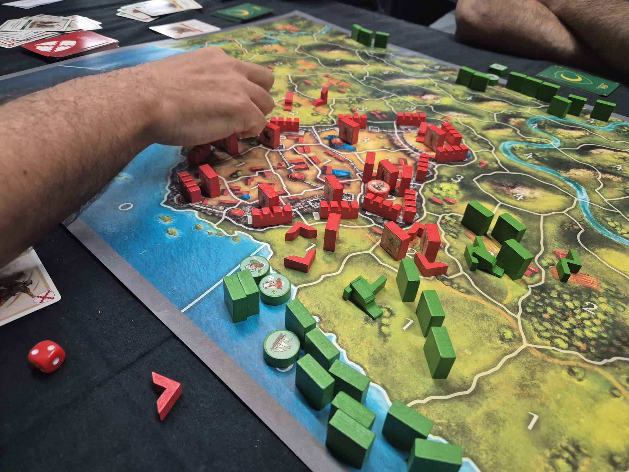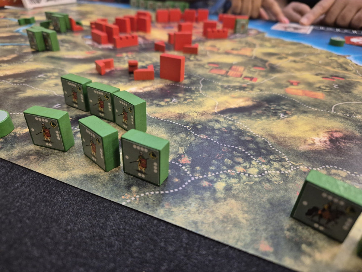In Castelnuovo, you will manage your army using vertical wooden blocks with stickers, and you will not be able to see the types of units your opponent has.