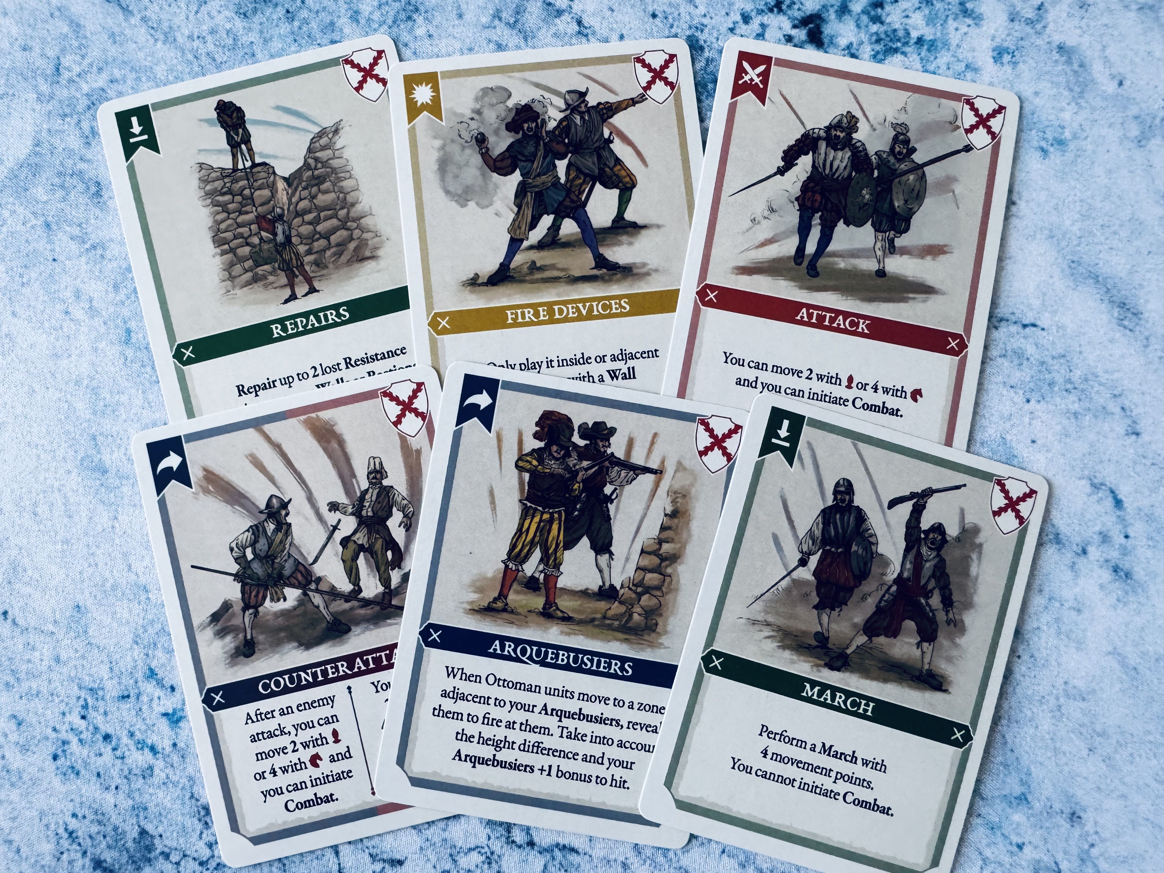The board is divided into zones and you will have other types of resources such as cannon batteries, walls, bastions, trenches, etc.
