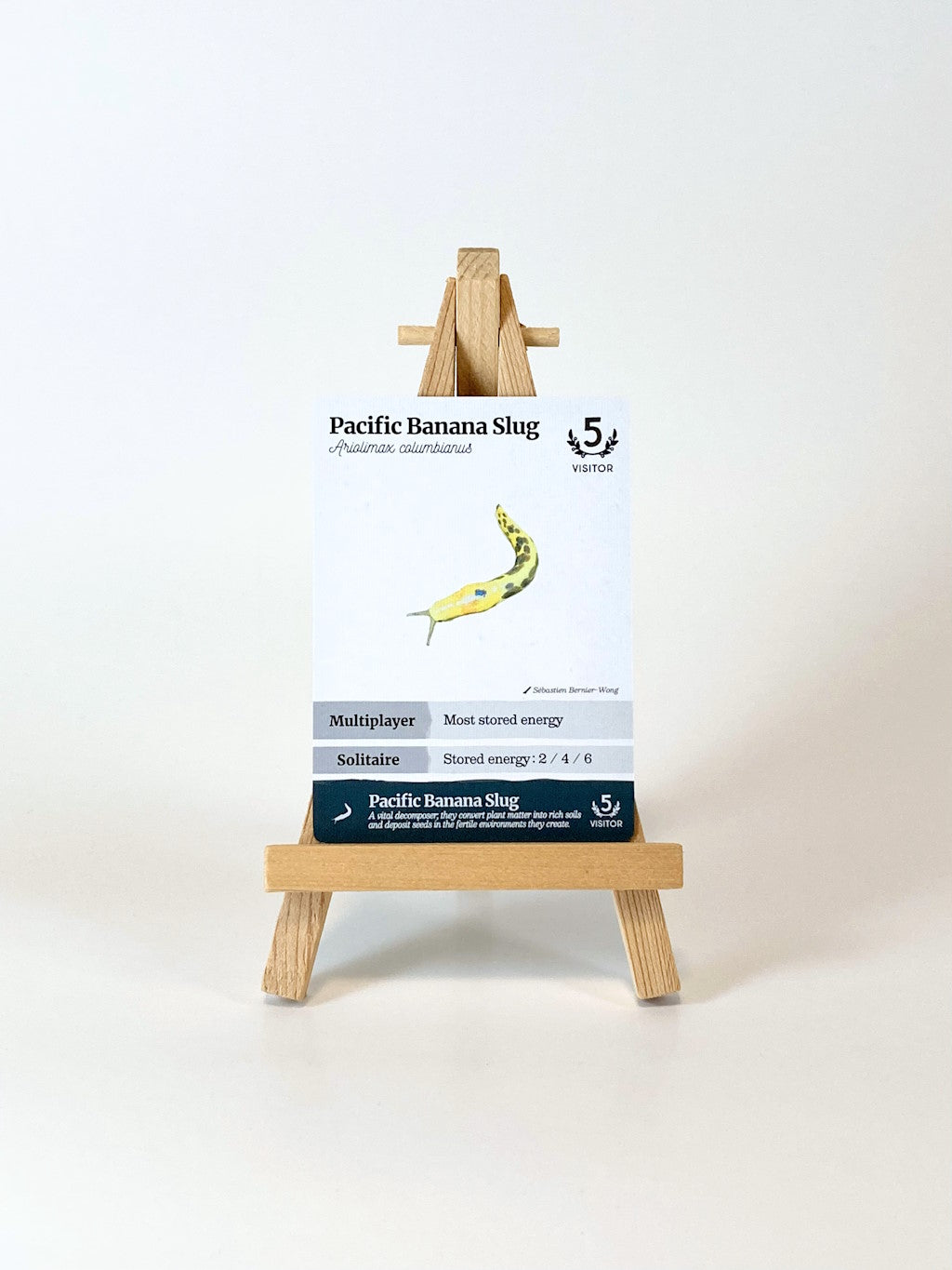 The game ends when all visitors have found a home. Each player's forest is scored for the value of their plants and for the visitors they host.