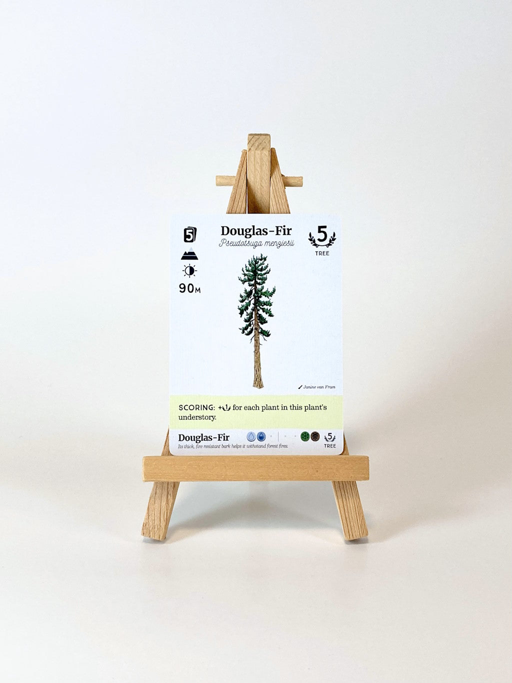 Reforest is a medium-complexity card game with light engine-building elements where players compete by arranging synergistic tableaus of plants. Each plant played has unique traits and abilities and will help attract animal visitors.