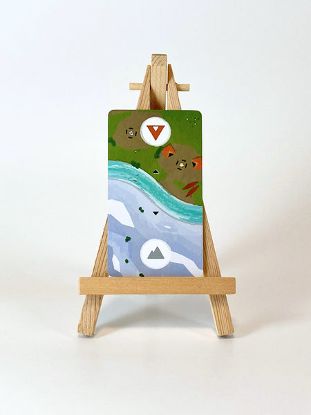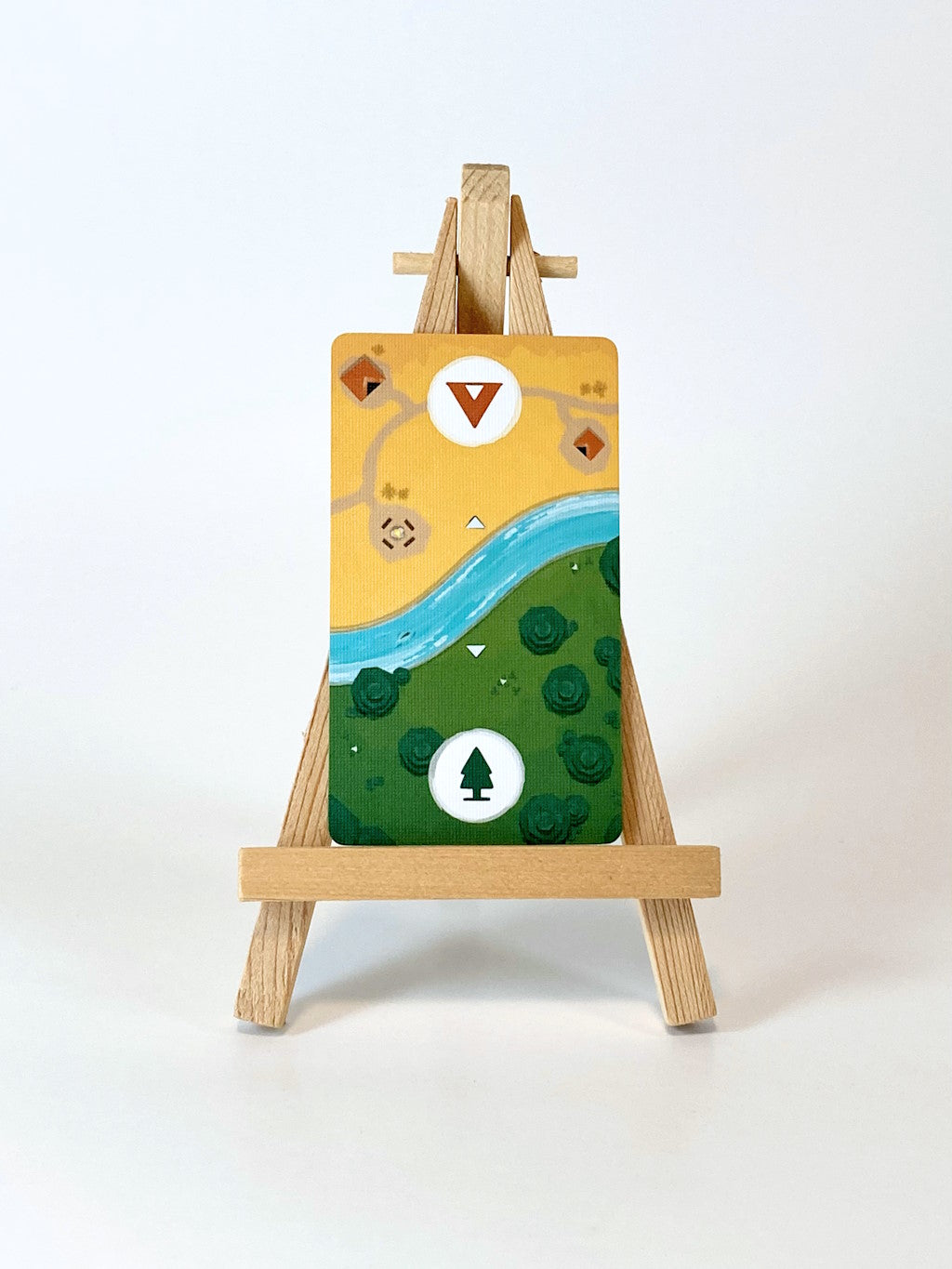 On your turn, you'll add a card to the growing river ecosystem; either extending the flow of water or the existing banks. You'll be competing over a different set of objectives in each game, the resulting rivers each having their own personality.