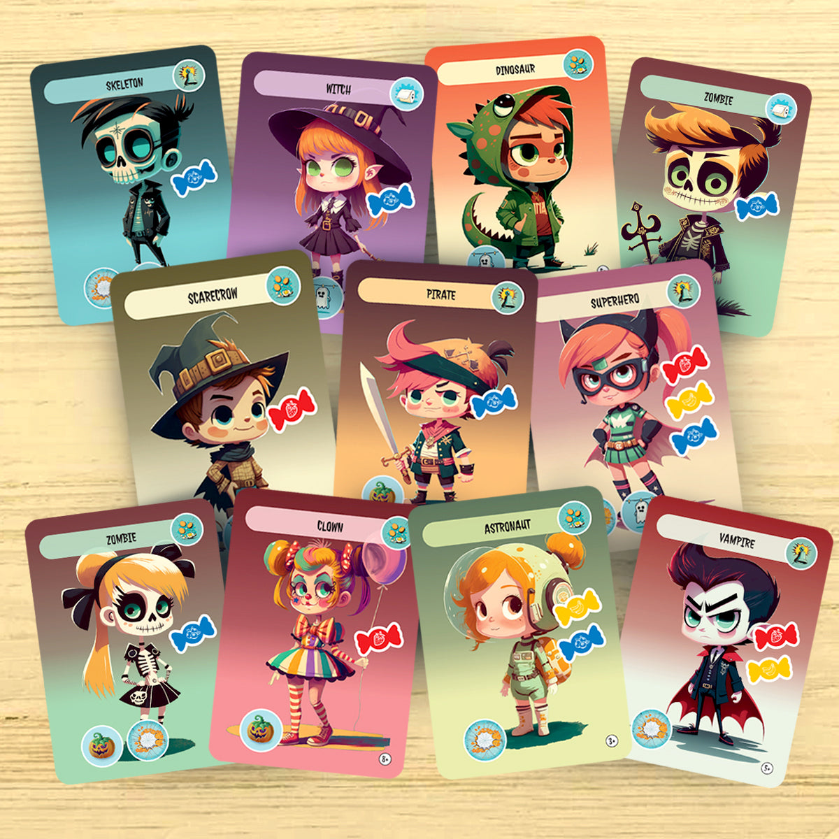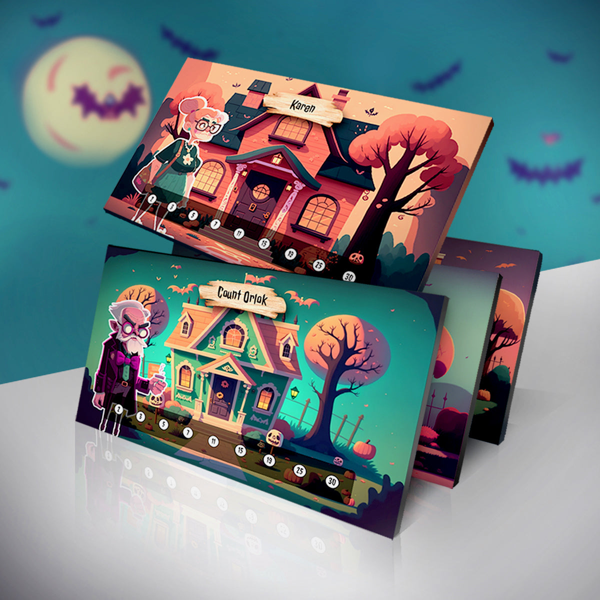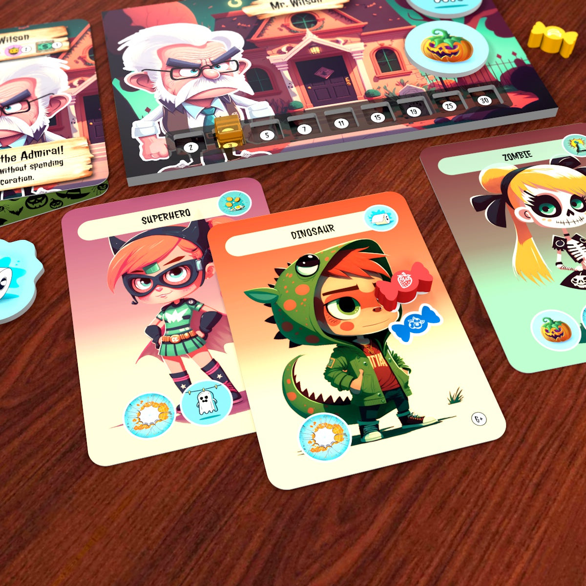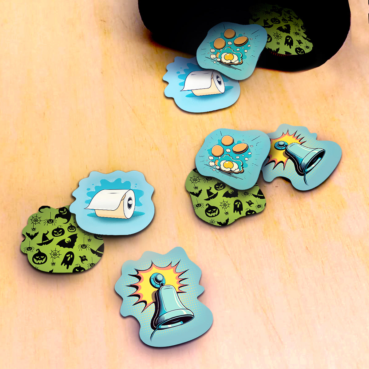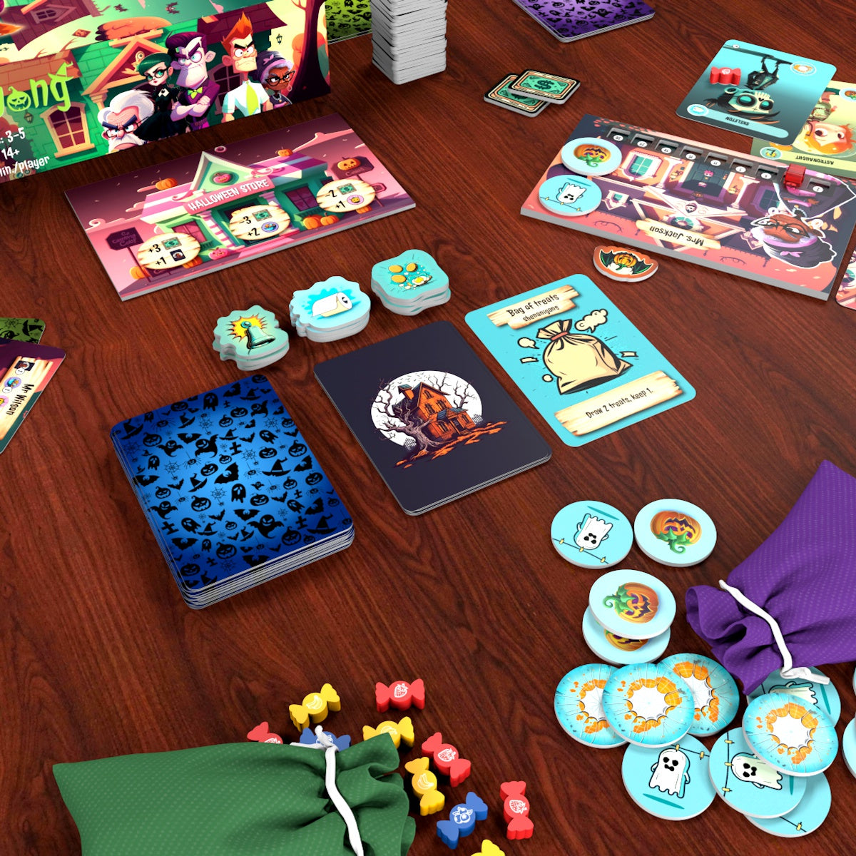 💥 On your turn, draw a Trick-or-Treater card and send it to the poor soul holding the cursed Ding-Dong token. Will they bribe the kid with treats, spend precious decorations to scare them off, or suffer a prank that could ruin their night?