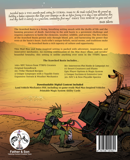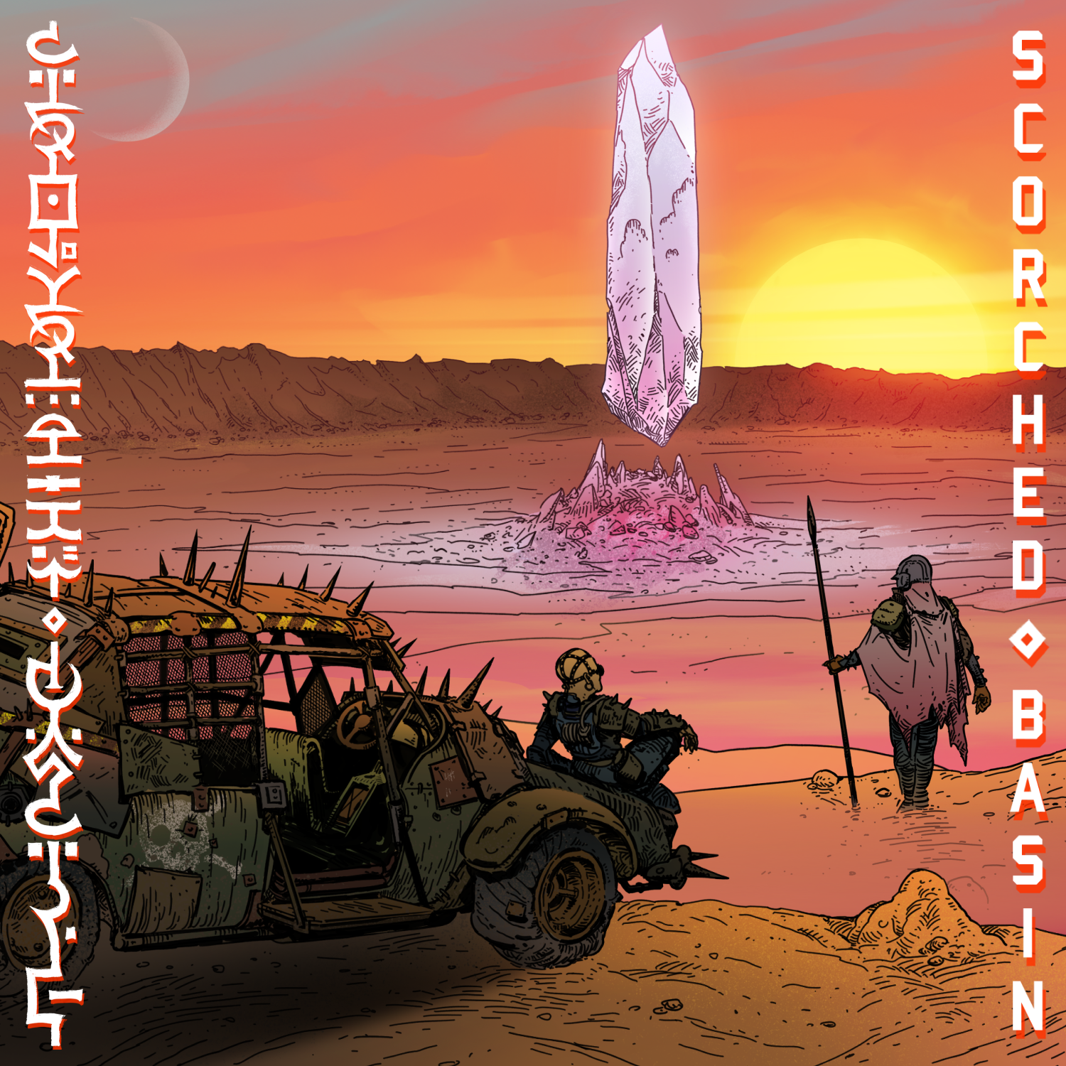 - TTRPG book soundtrack with amazing songs explicitly produced in the Scorched Basin's Mad Max and Dune styles.
