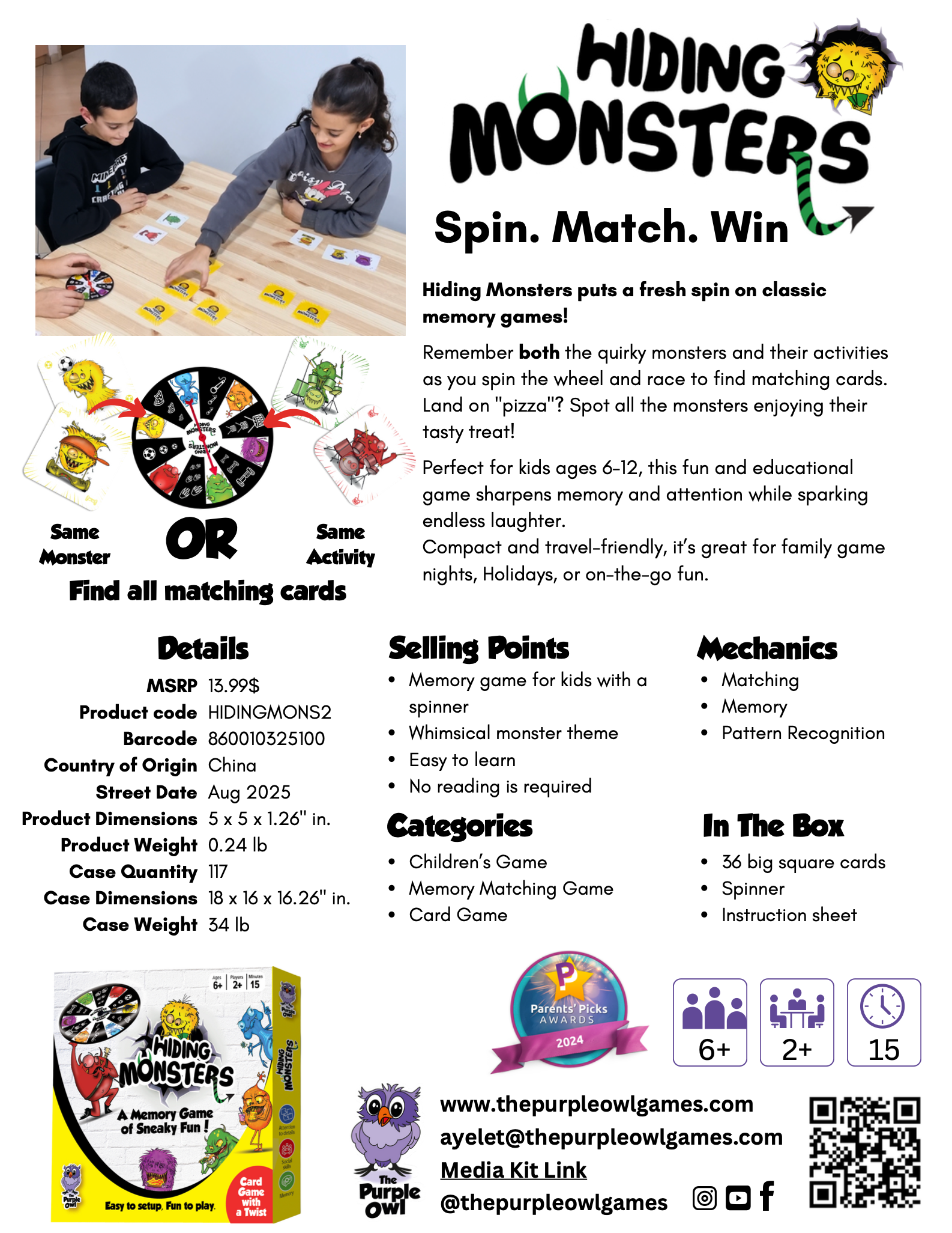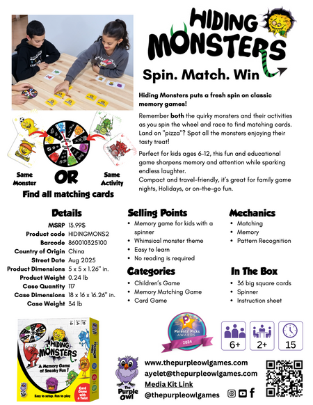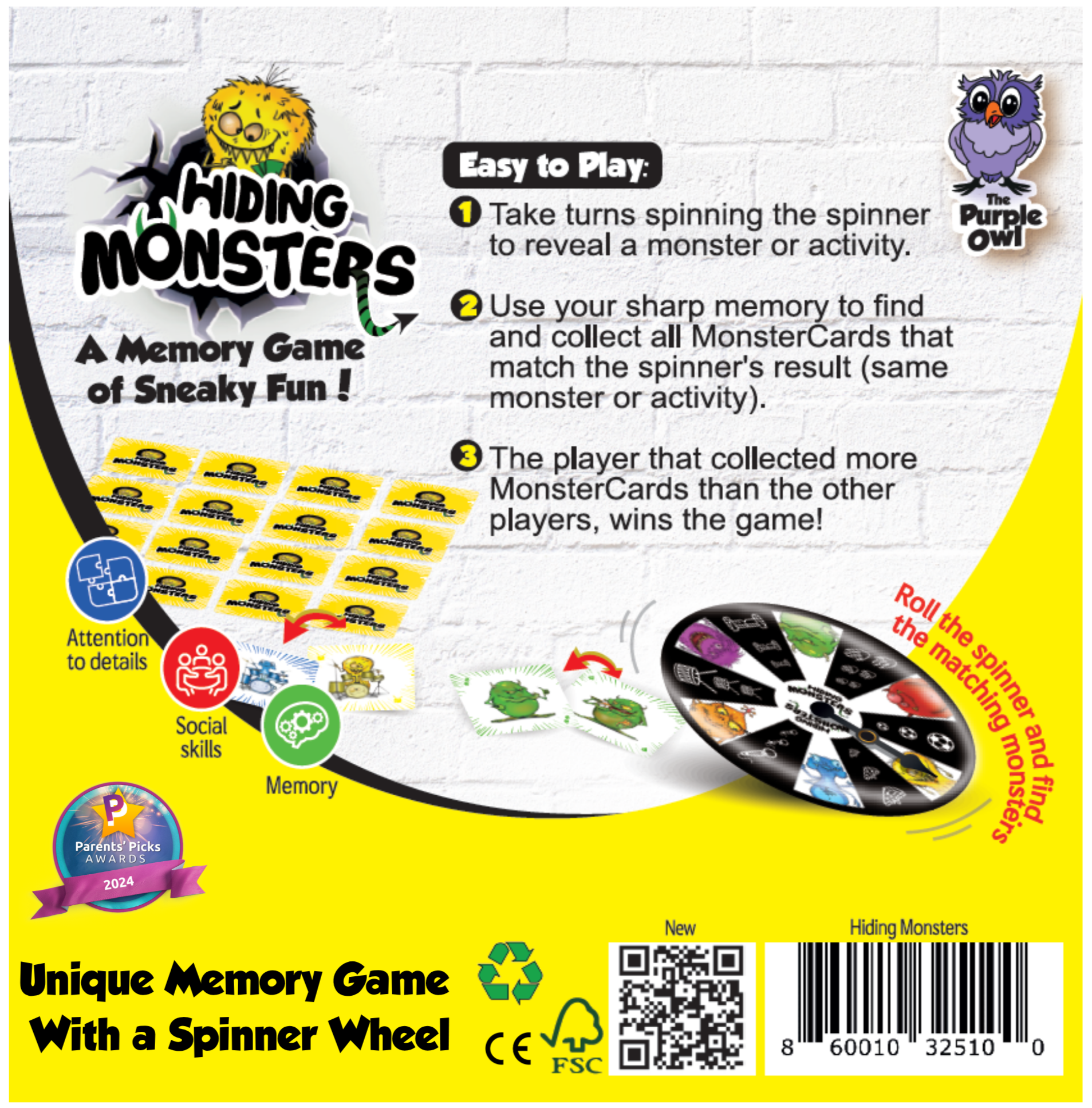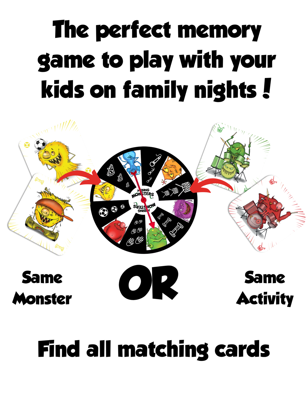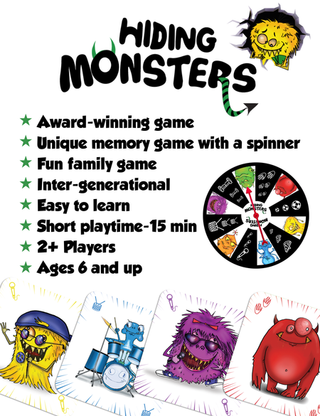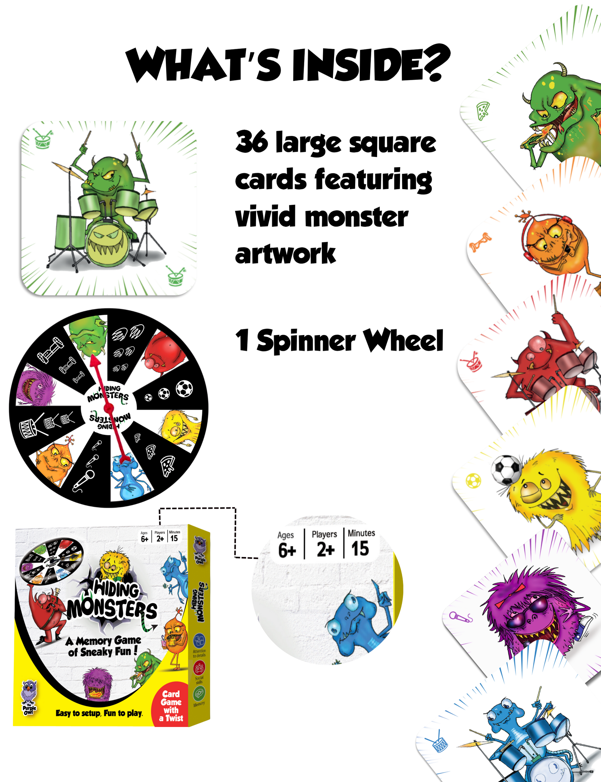 Hiding Monsters - A memory-matching game with a spinner wheel and a colorful monster theme