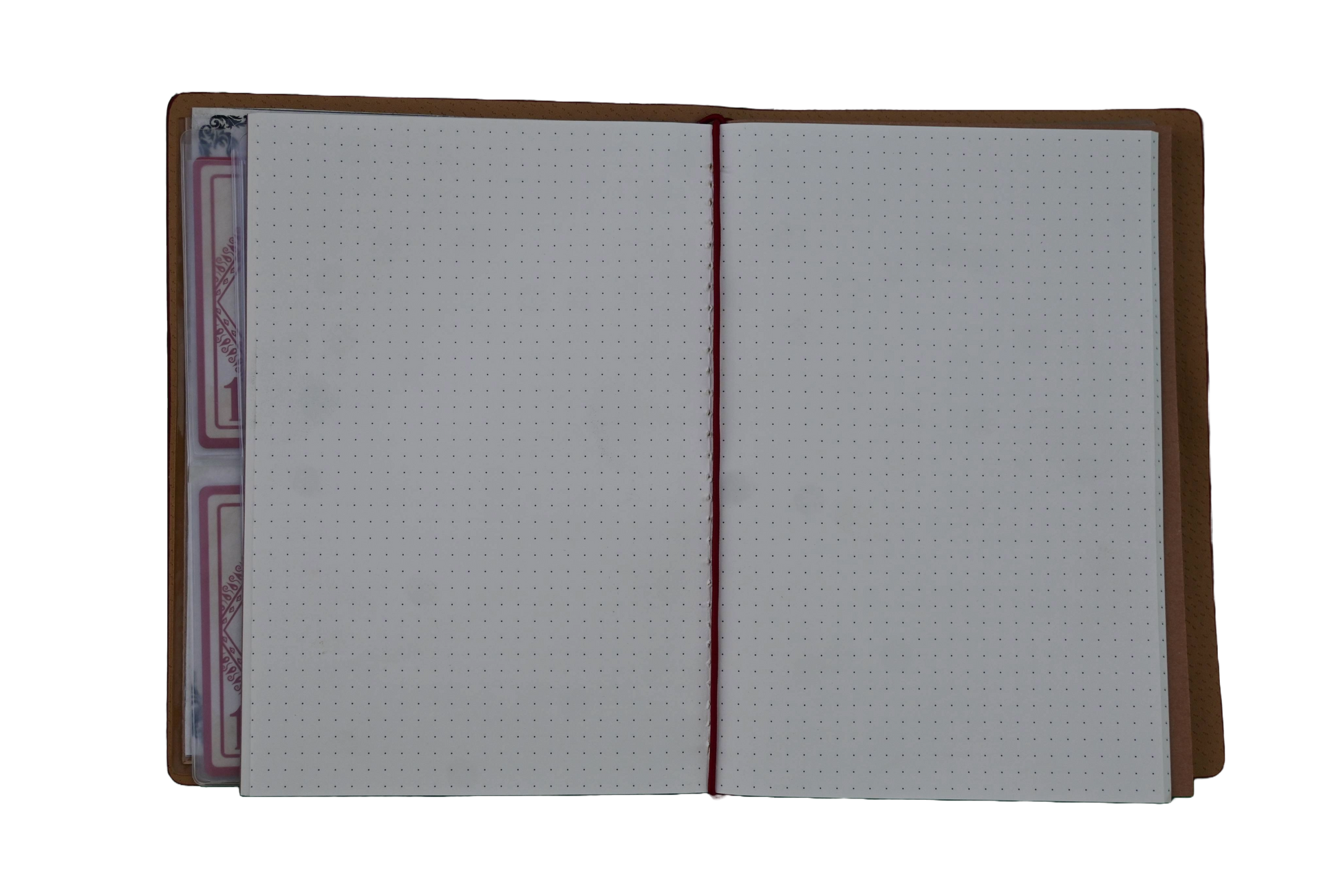 Inside, the journal combines thoughtful utility with high-quality materials. It includes a dry-erase character sheet insert for easily updating stats and leveling on the fly, along with clear mylar sleeves perfectly sized for spell and equipment cards. Players will also find dot-graph paper ideal for dungeon mapping or tactical layouts, as well as thick, high-grade drawing paper suited for journaling, sketching, and campaign notes.