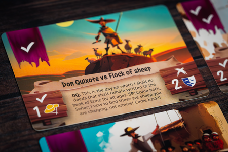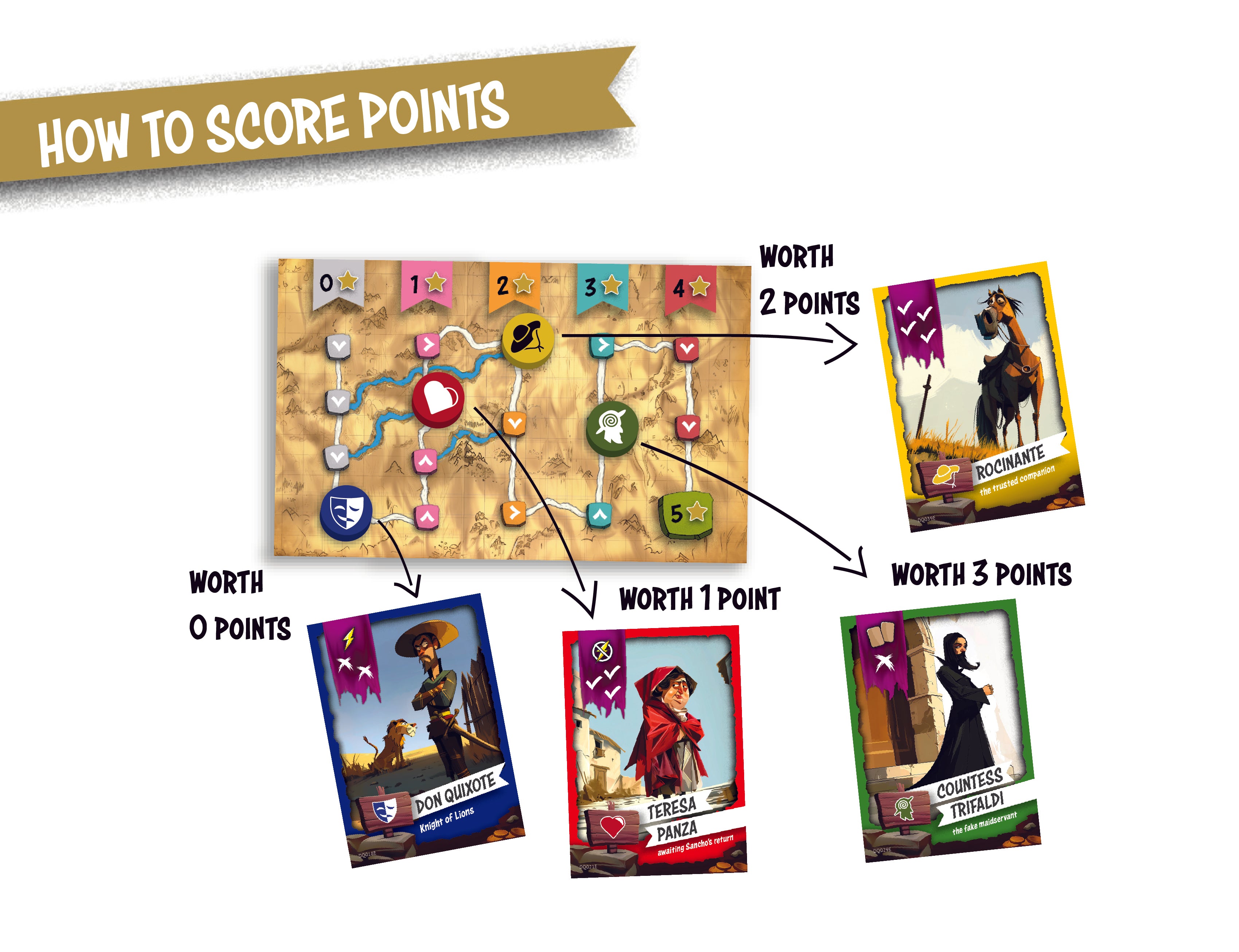 At the end of the game, you will score points for achieving your personal secretive objective. Each character you played is associated with one of Don Quixote's attributes, and it will also score you bonus points depending on its value.
