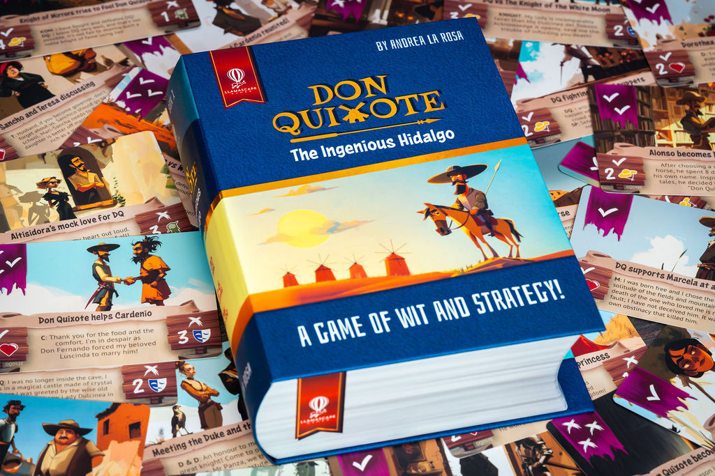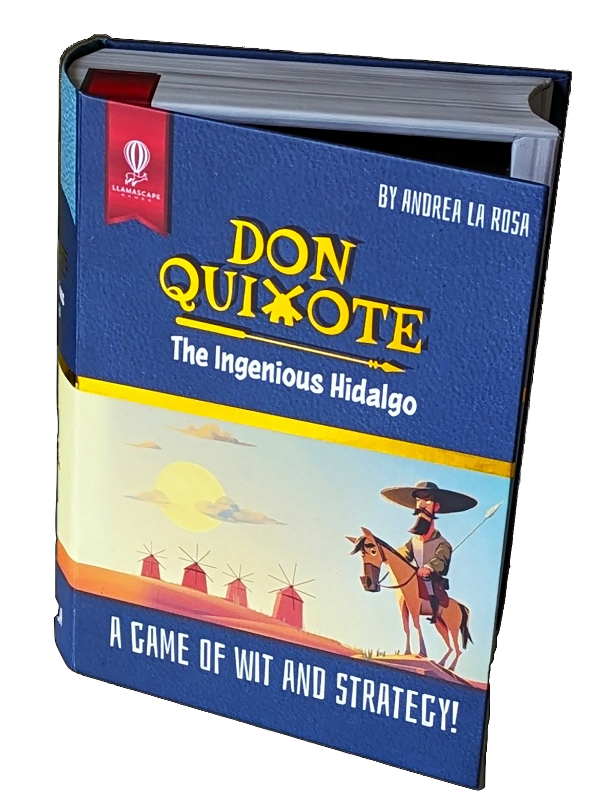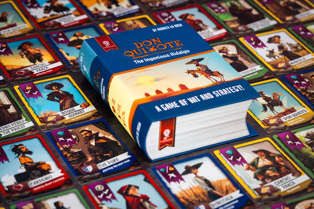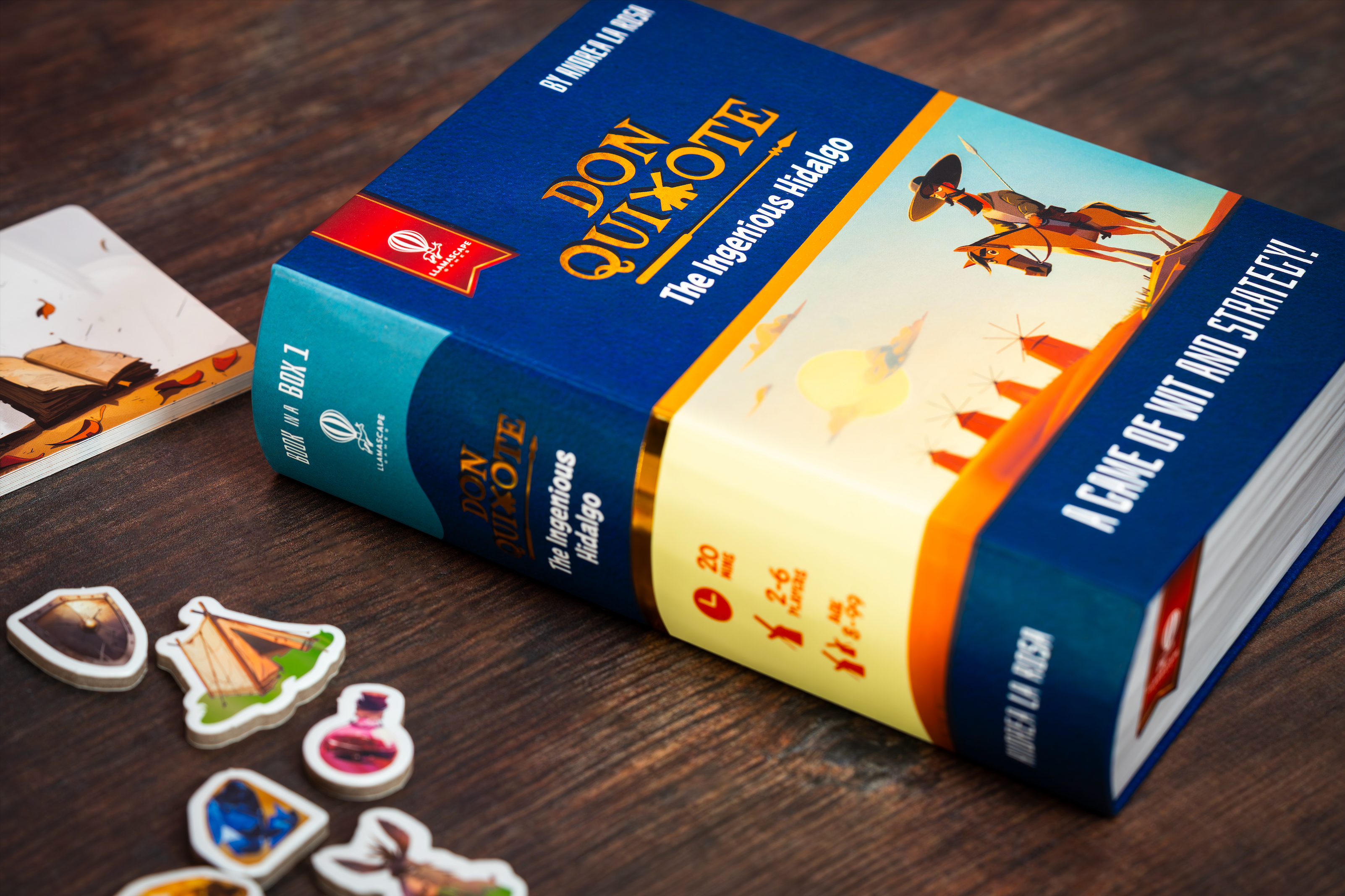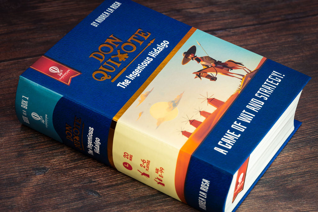 Inspired by Cervantes’ classic, Don Quixote: The Ingenious Hidalgo is an easy-to-learn game of wit and strategy for 2 to 6 players, hidden inside a beautiful book-shaped box.
