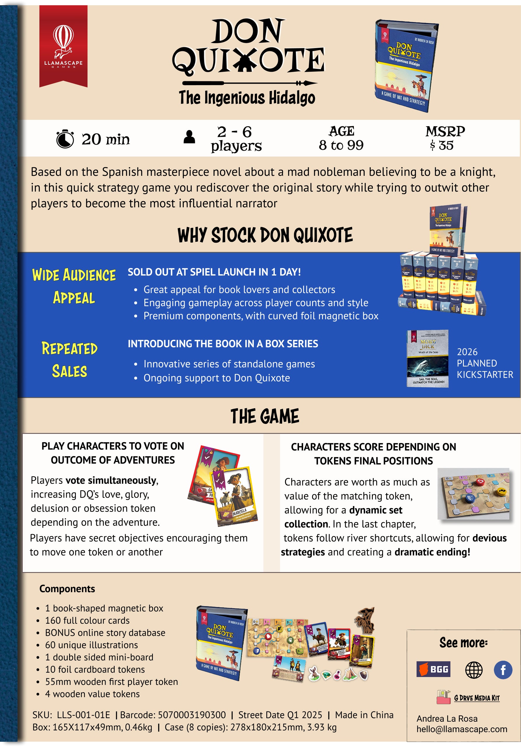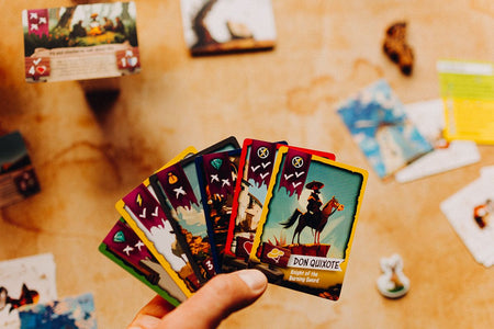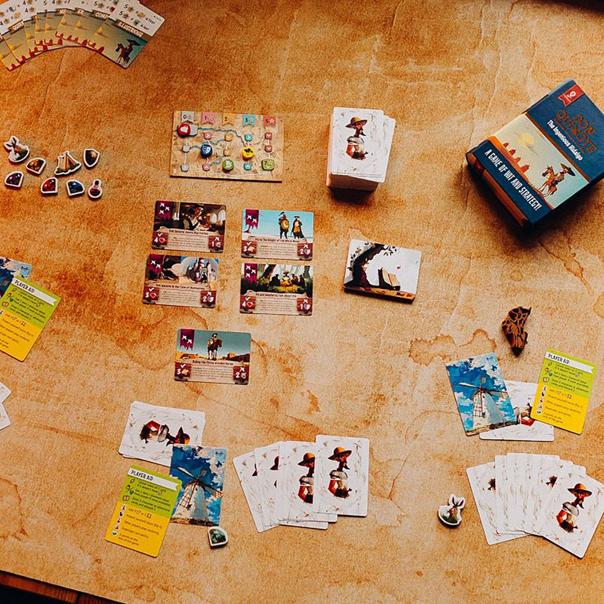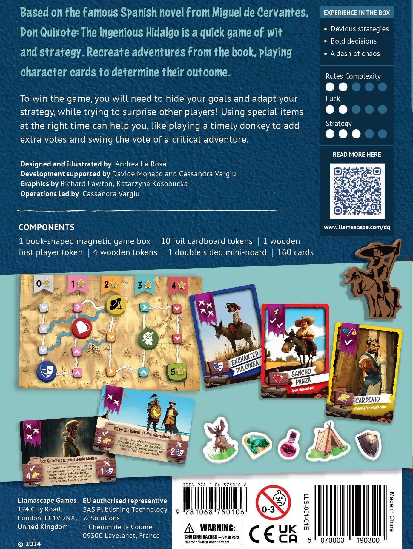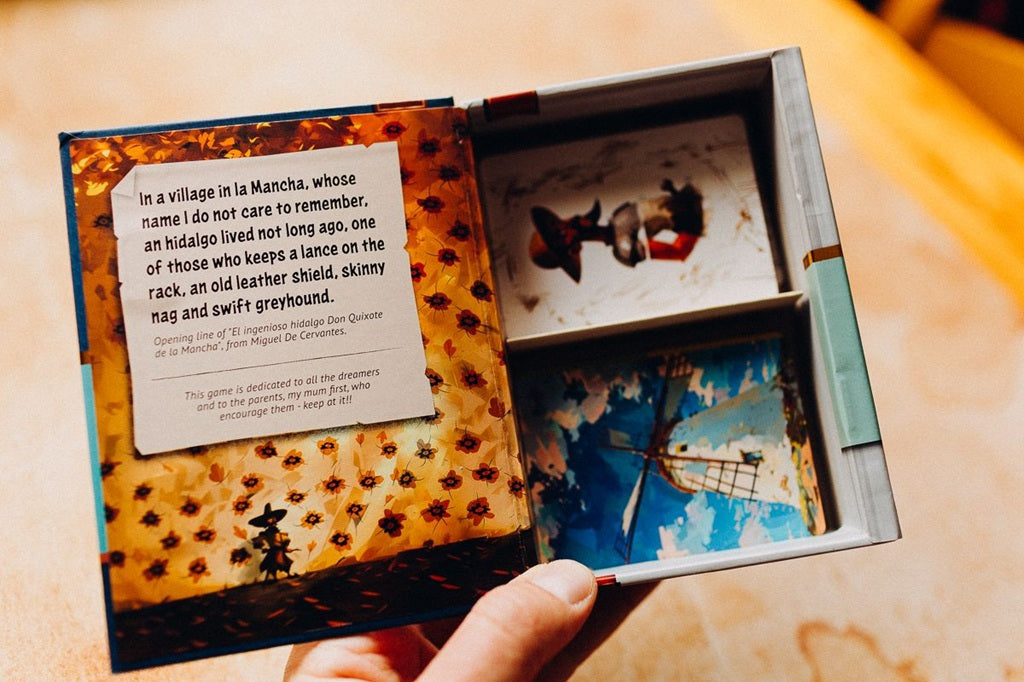 Inspired by Cervantes’ classic, Don Quixote: The Ingenious Hidalgo is an easy-to-learn game of wit and strategy for 2 to 6 players, hidden inside a beautiful book-shaped box.