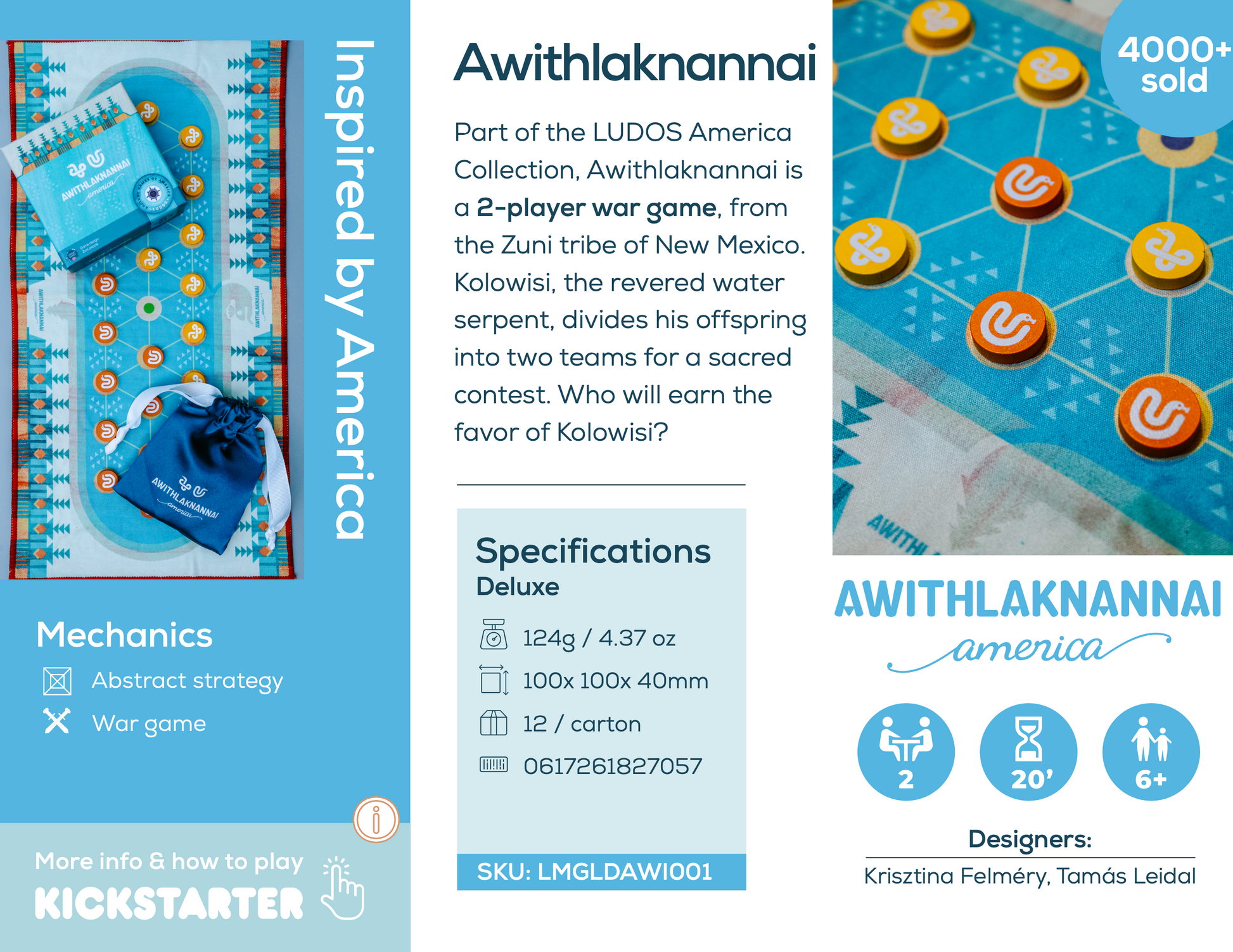The second volume, LUDOS America features four, 2-player ancient strategy games from Chile (Komikan), Guatemala (Puluc), Hawaii (Kōnane) and the American Southwest (Awithlaknannai).