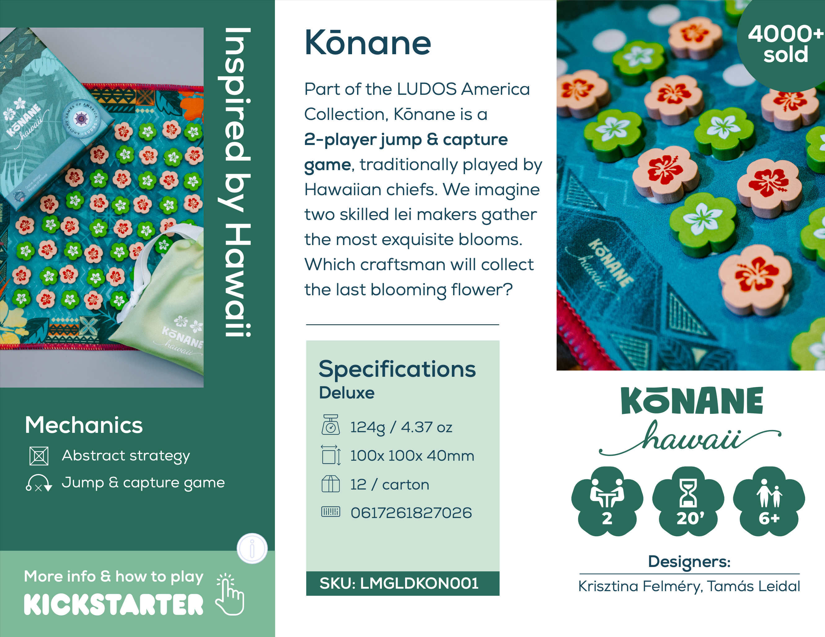 History: Kōnane is a centuries-old jump-and-capture game, traditionally played by Hawaiian chiefs.