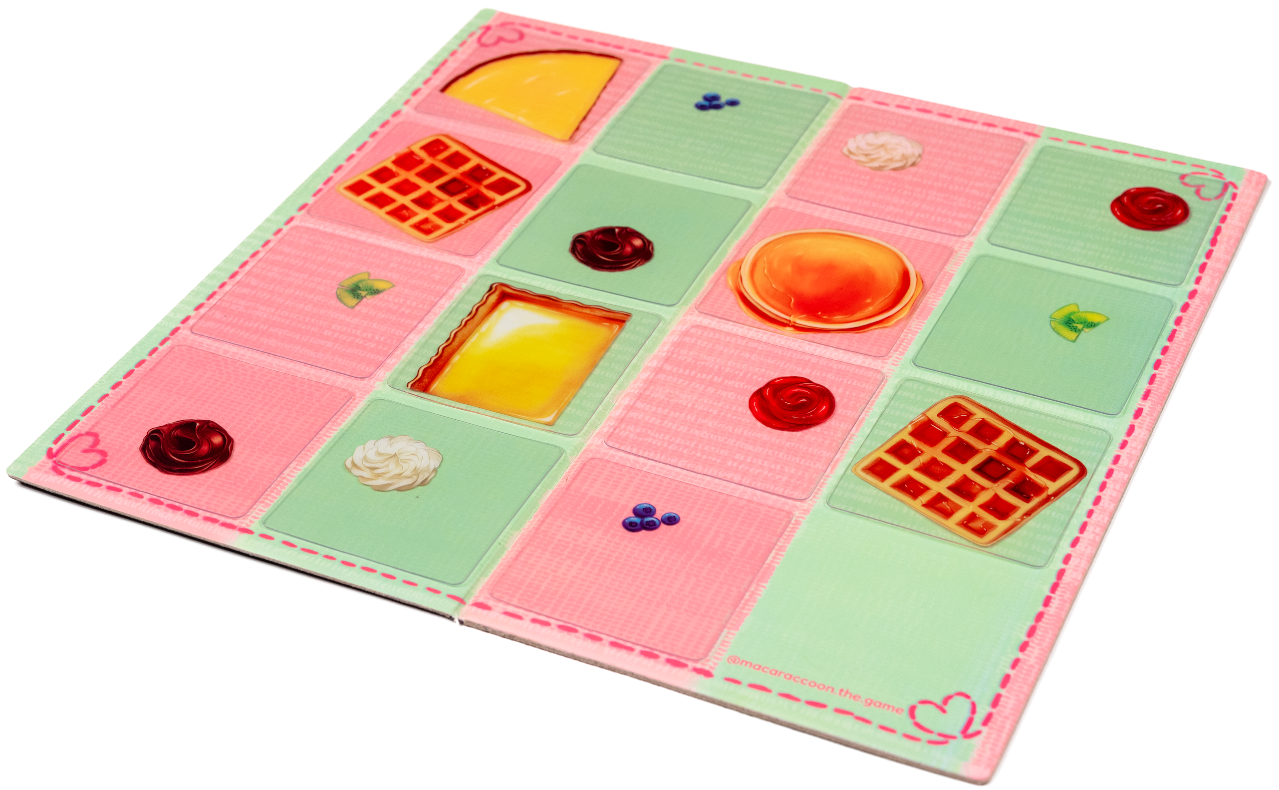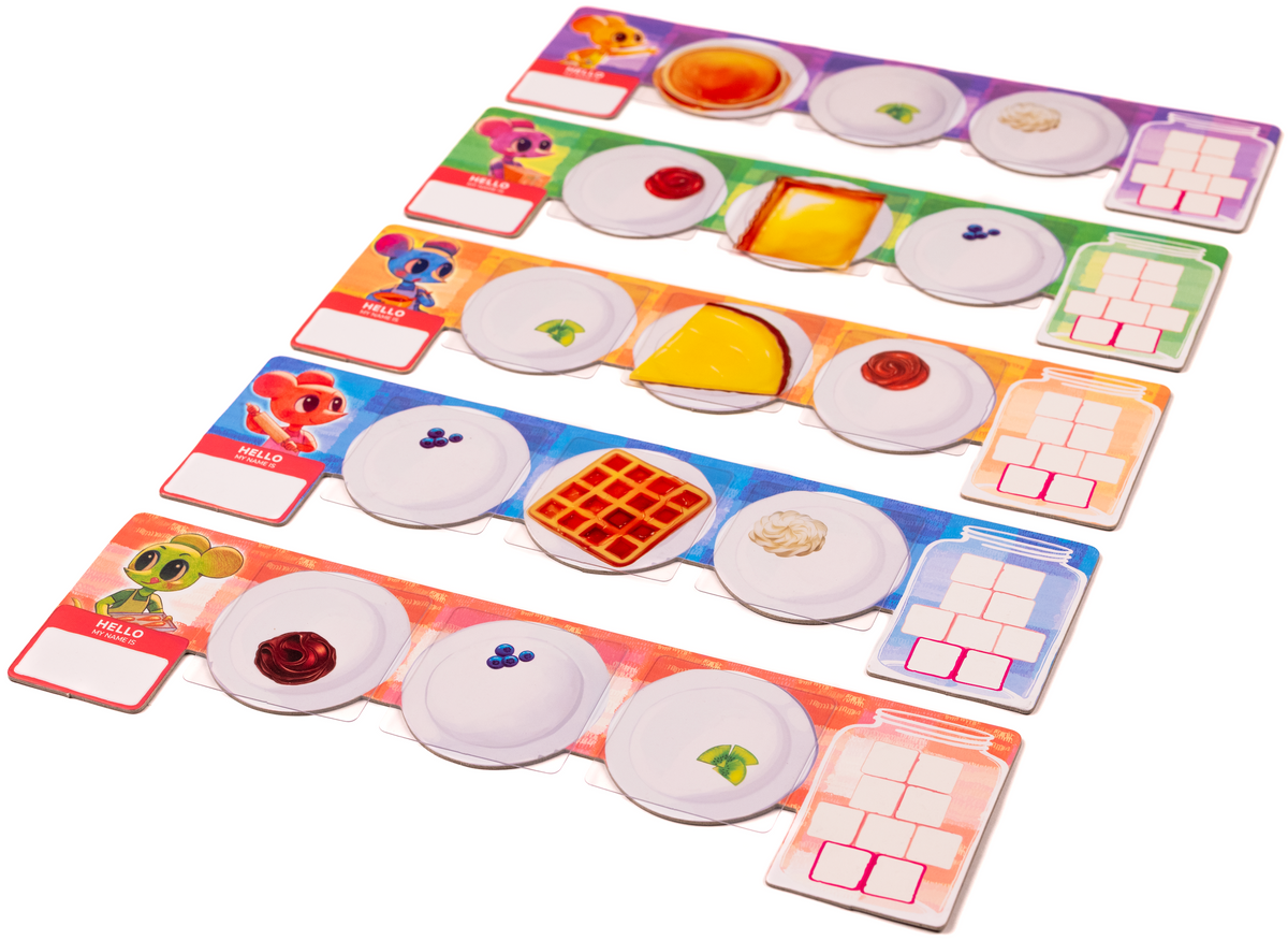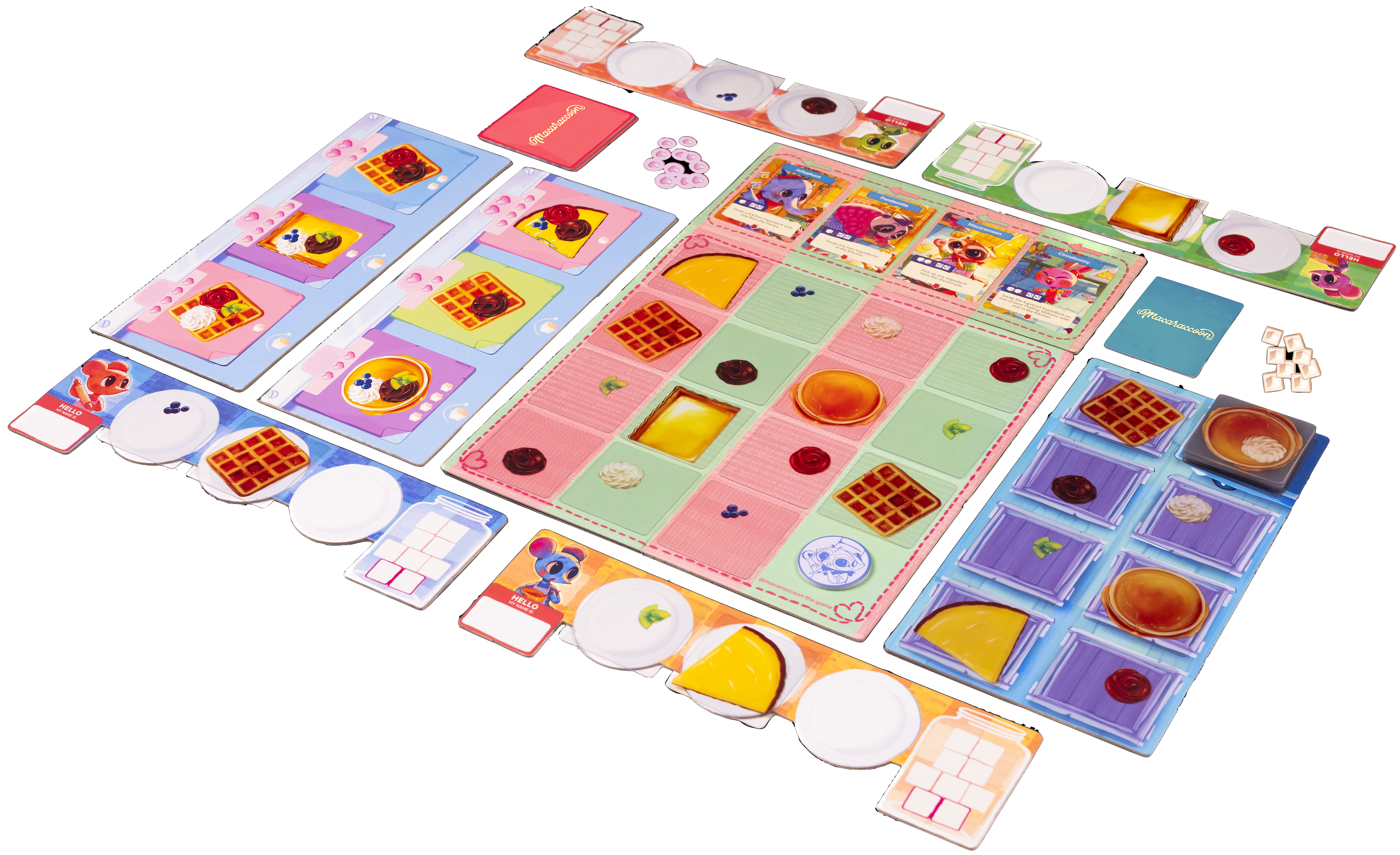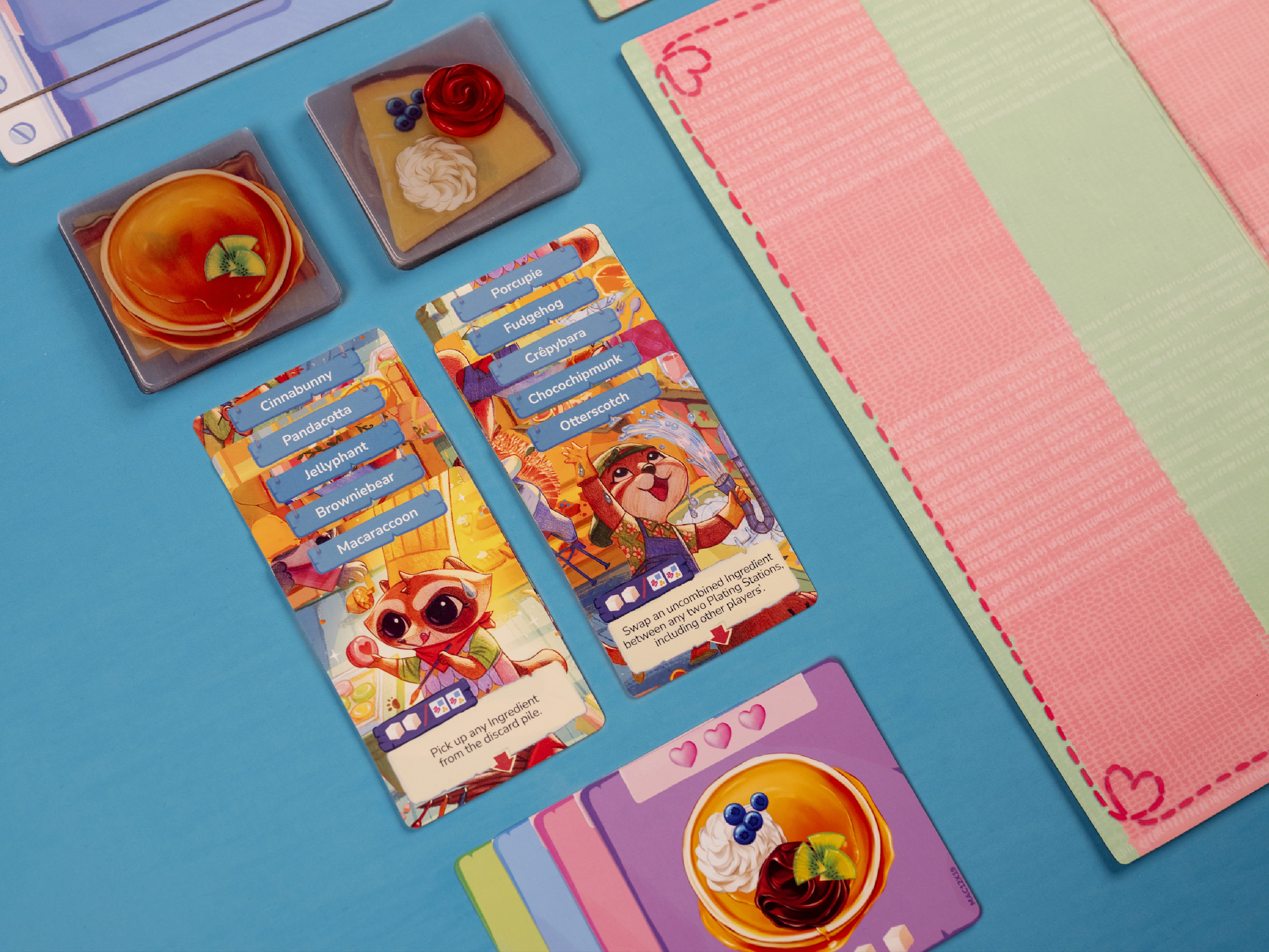 Get ready for tight set-collection, brutal action economy, and kitchen sabotage. Layer transparent treats. Bake delectable desserts. Steal, bribe, and Sugar Rush your way to become Sugarmouth’s new Bake Master. Pick ingredient cards from the shared kitchen. Manage your limited countertop space to stack bases, spreads, and toppings in the right order. Complete customer orders to earn sugar and win their hearts.