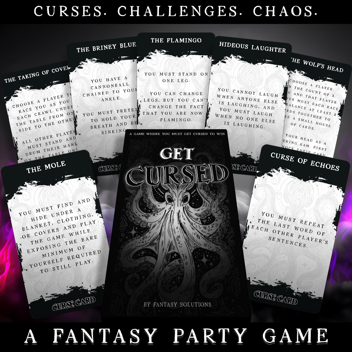 Get Cursed is a fast-paced fantasy party game that turns any group into a laughing, chaotic spectacle.