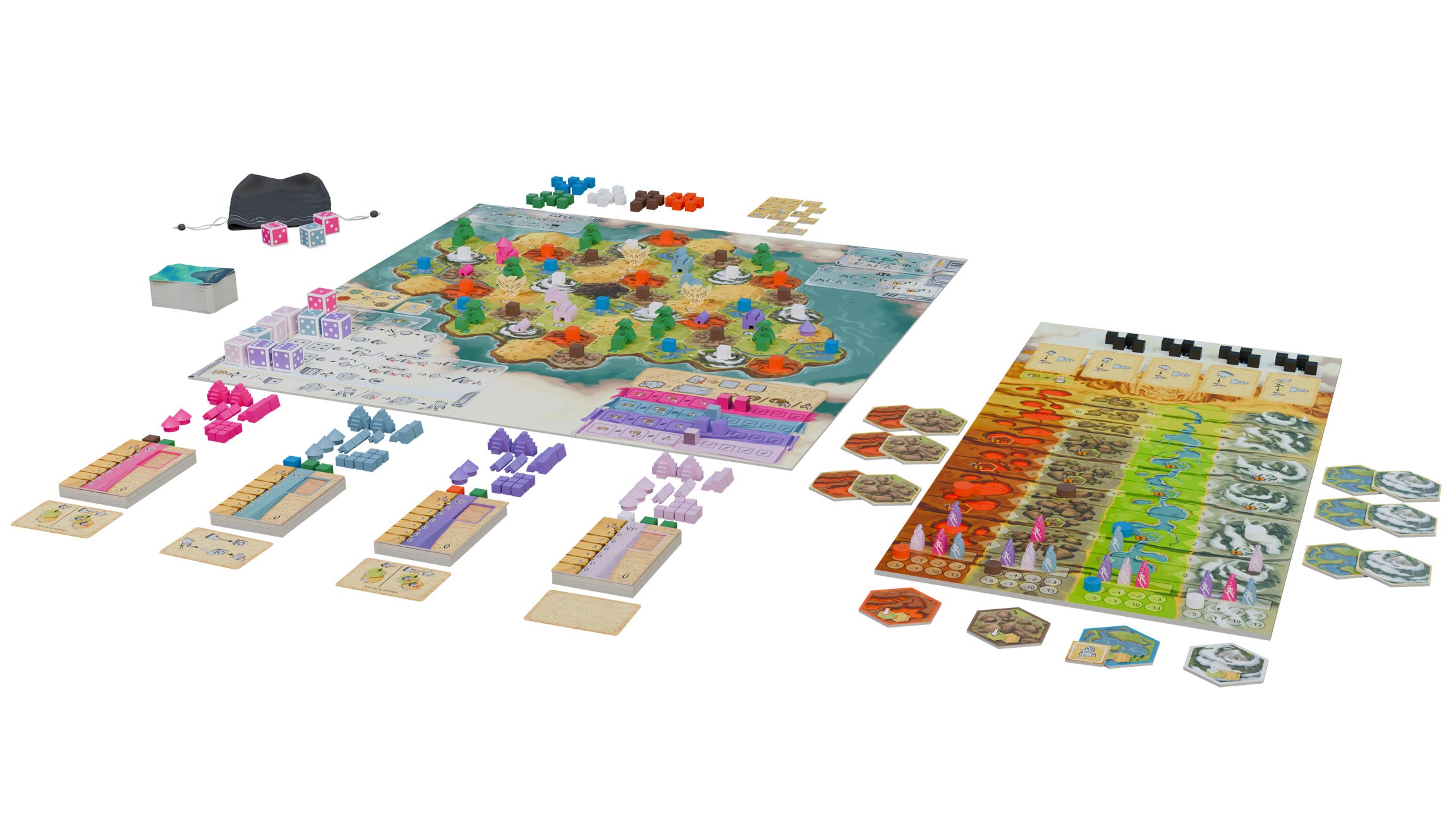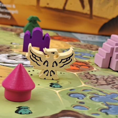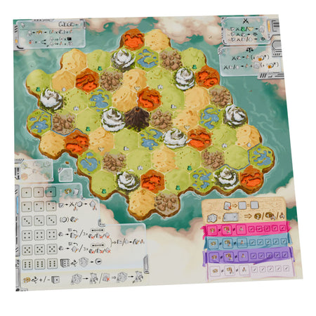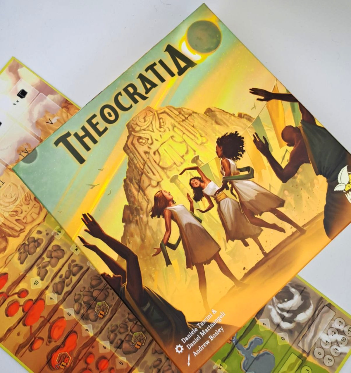 At its core, Theocratia is a dice‑drafting game in which each die number corresponds to an action the player may perform with any of the Civs. These actions—build, upgrade, produce, fight, and declare a holiday—are classic Civ‑game staples and will typically earn you Worship points with the civilization you activated or help that Civ develop, increasing its overall “Civ value.” At the end of the game, you multiply the level of worship certain Civs reached on your personal track by their development level (Civ value). The highest total wins the game!