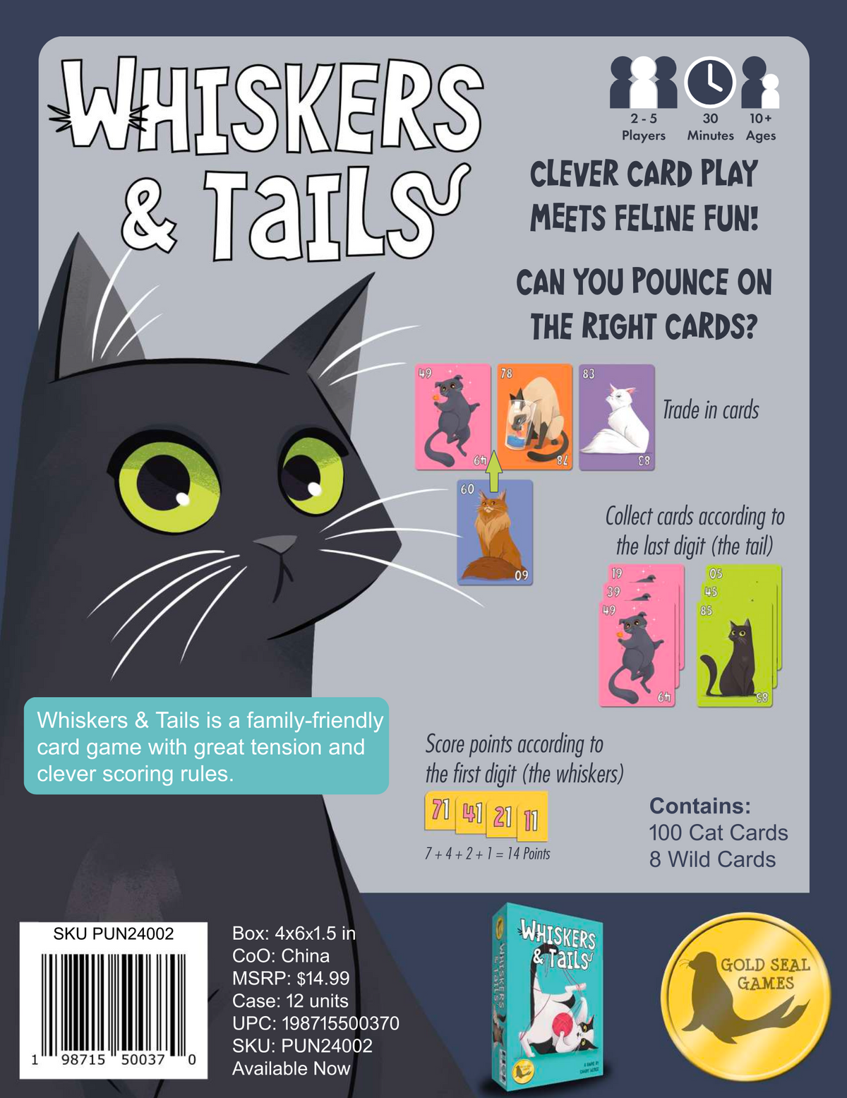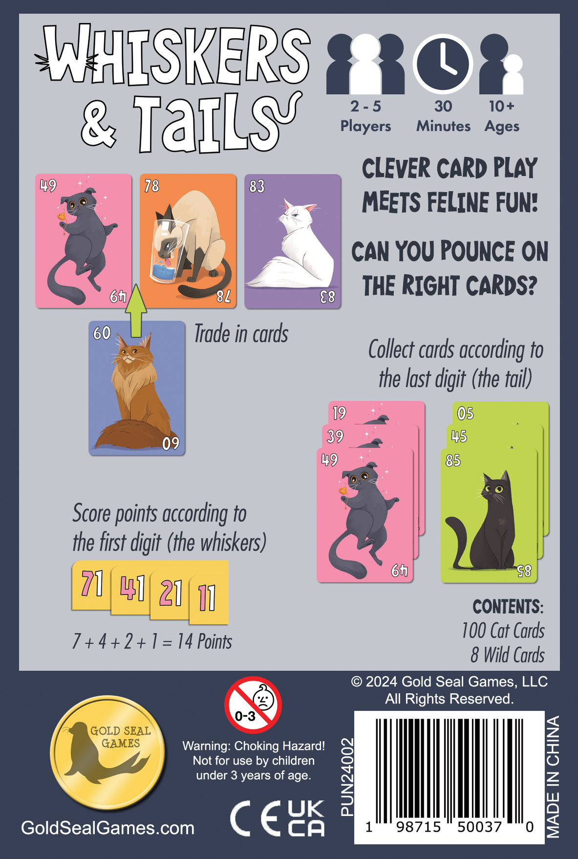 Whiskers & Tails is a family-friendly cat themed card game with great tension and clever scoring rules. It features set collection and hand management.