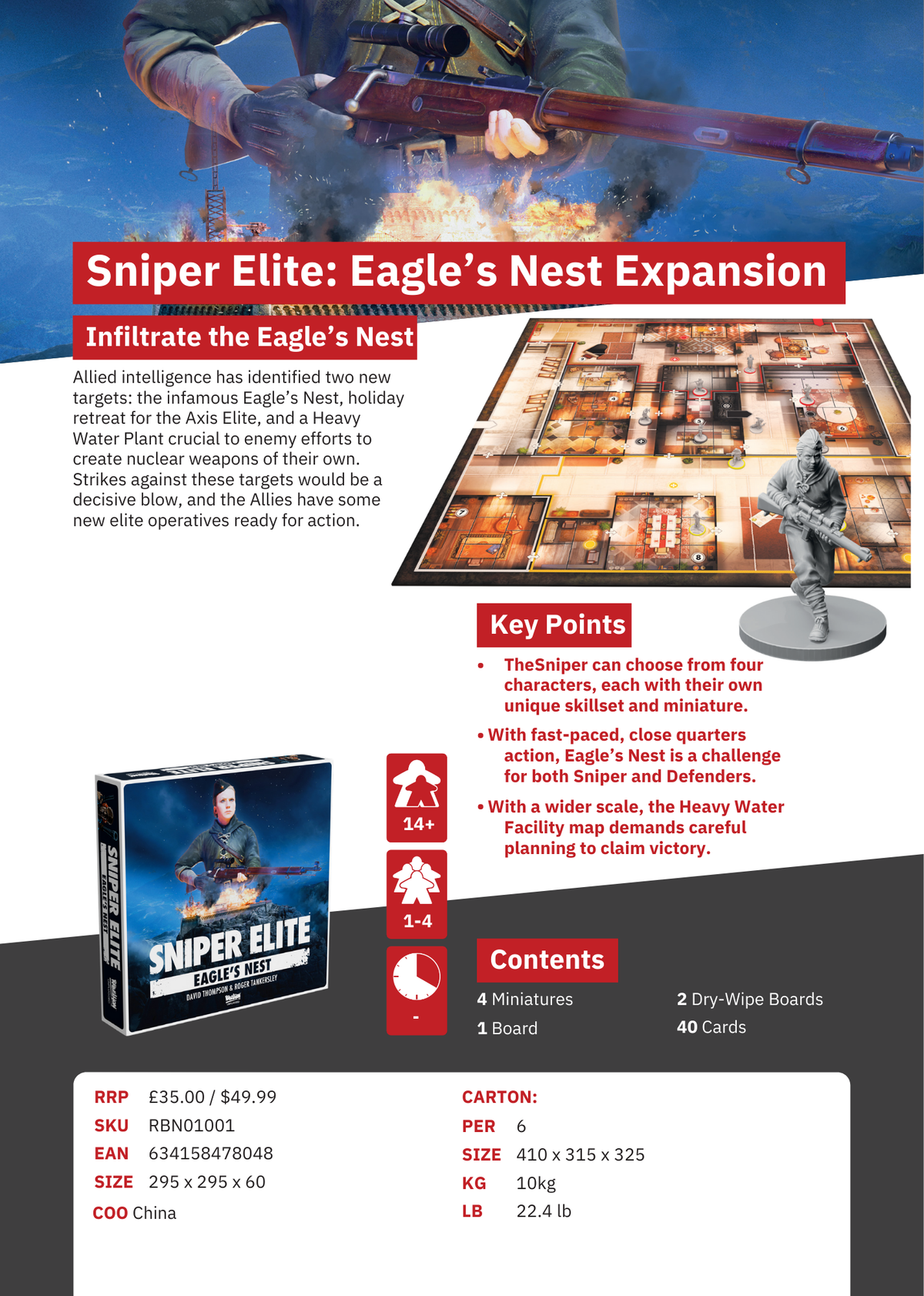 Sniper Elite: Eagle’s Nest introduces a range of new features that can be added individually or combined to expand your games of Sniper Elite: The Board Game.