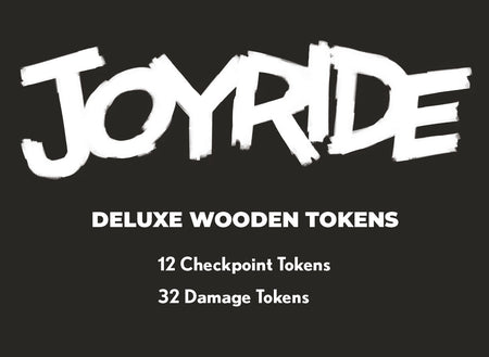 Upgrade your races with 12 deluxe wooden checkpoint tokens and 32 wooden damage tokens for Joyride: Survival of the Fastest.
