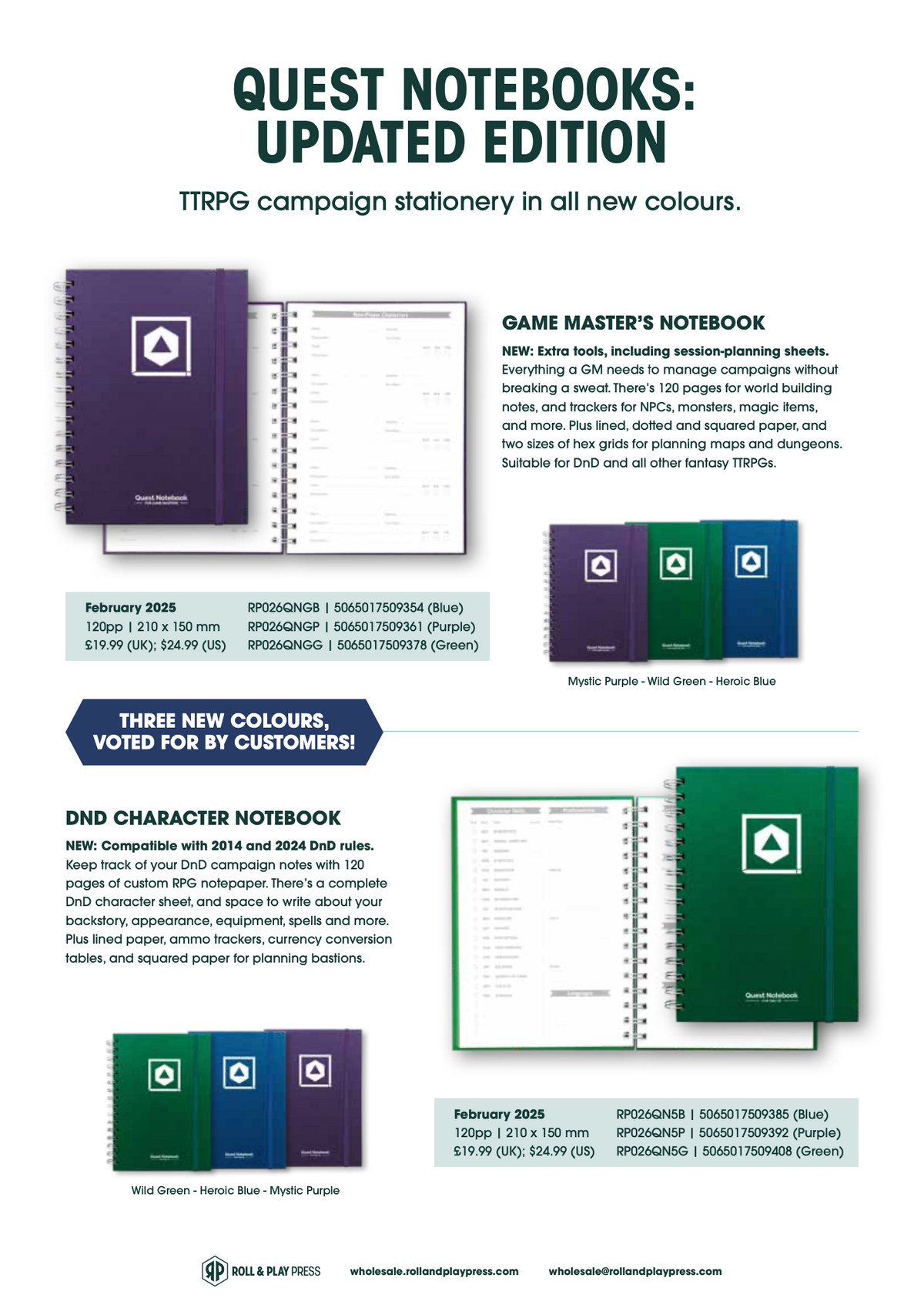 The Game Master’s Quest Notebook has 120 pages of custom RPG notepaper. It is compact, hard-wearing and wire-bound, so it's easy to fold in half and always lies flat on the tabletop. An elastic strap and rear pocket keeps your notes and handouts safe between sessions.