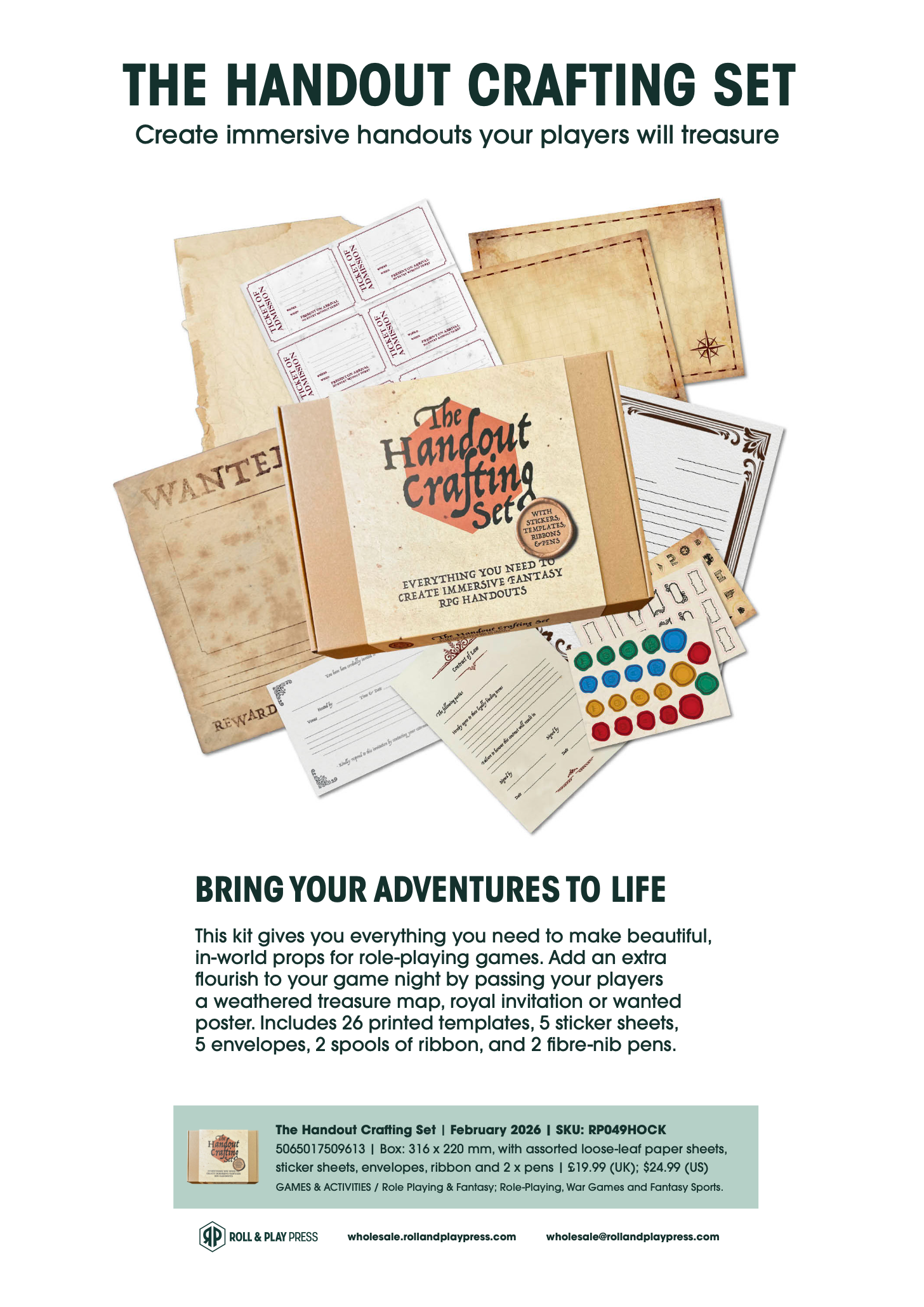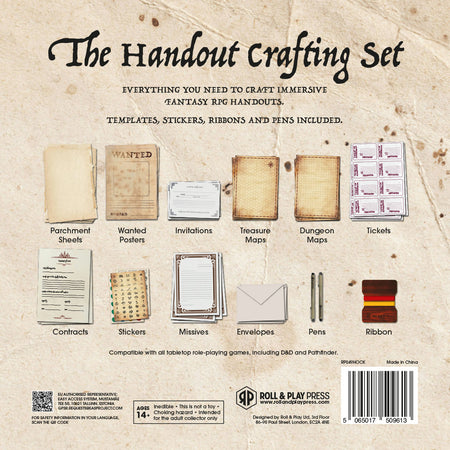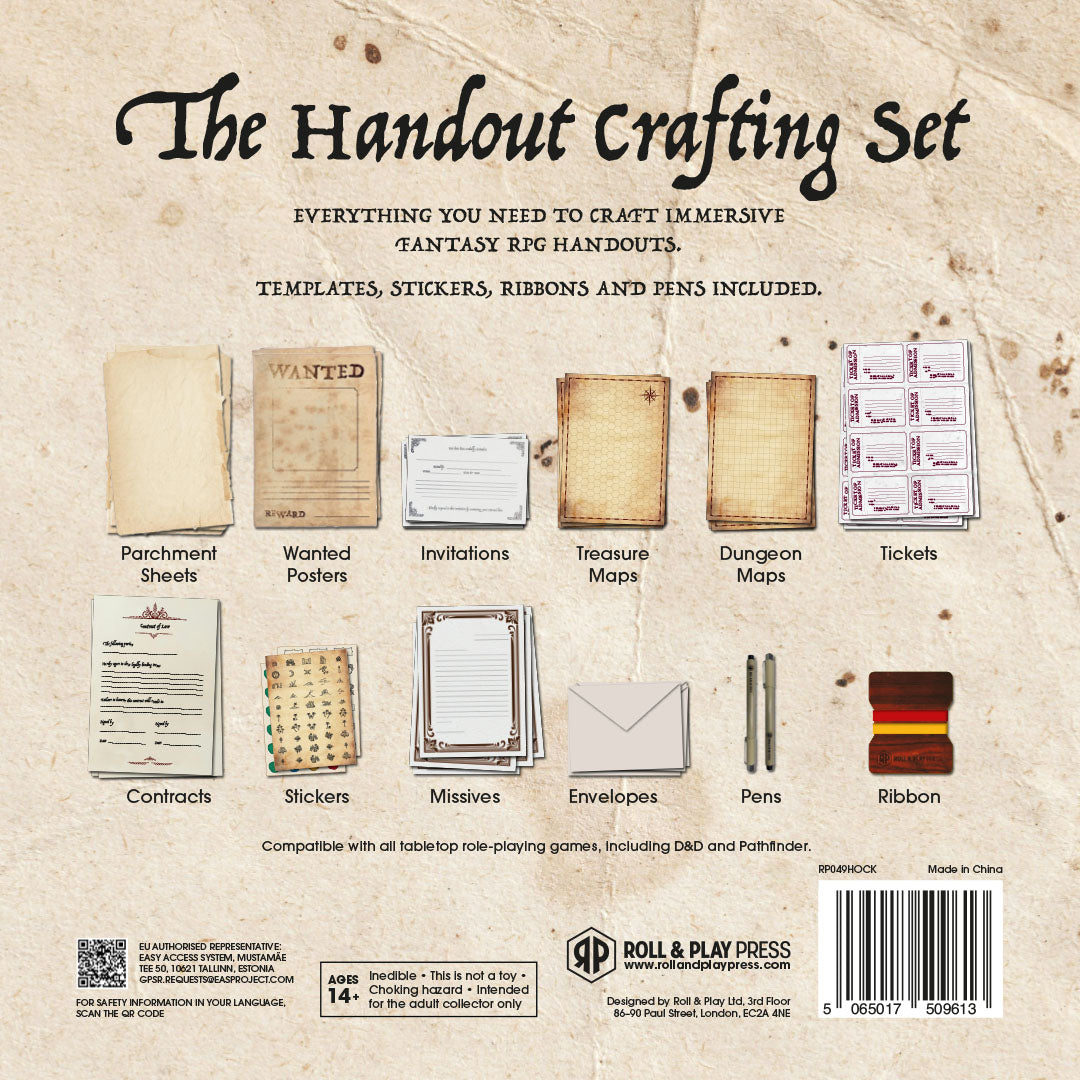 The Handout Crafting Set gives you everything you need to make beautiful, in-world props that bring your tabletop adventures to life.