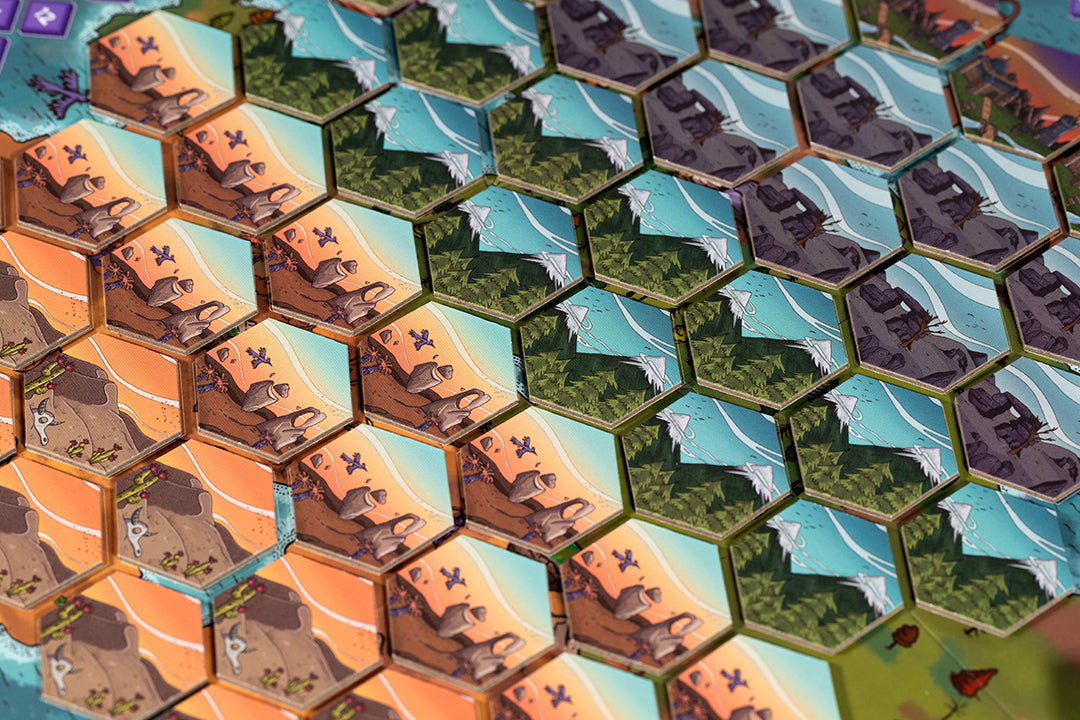 Gems of Iridescia DELUXE is an easy to learn, fun to master worker placement board game where players will push their luck as they compete to mine gems, restore ancient relics and ascend to the throne of a rich gem-filled world. Quick to learn using a simple rule system that enables players to jump right into the game without reading page after page of rule books. Secret objectives and a variety of ways to score create different paths to victory making every expedition a unique and fun experience. Explore Iridescia by flipping over land tiles, revealing the gems hidden beneath them and then roll dice to mine them. Each gem color is tied to a dice value that can be manipulated to help your cause. Roll high enough, and you can claim more gems, adding them to your cargo hold providing you with a valuable resource for restoring relics and scoring royalty points! Sell some of your hard earned Gems and visit Rumi the Travelling Merchant to purchase tools that will grant your adventurers exciting new abilities to aid in their search for Iridescia’s treasures! Your trove of Gems can be used to restore Iridescia's ancient relics. Restoring Relics will gain you tons of Royalty Points and solidify your claim to the throne! The beautifully illustrated world of Iridescia provides a bounty of little hidden details and treasures for players to discover.