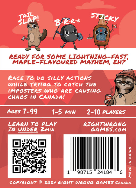 Race to act out silly Canadian-themed moves as fast as you can. But watch out! There are some chaotic imposters ready to throw off your game! Be the first to slap them and shout ‘Imposter!’ before anybody else.