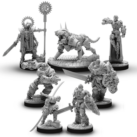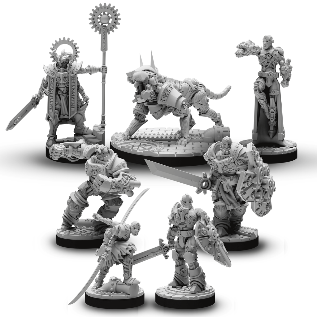 Inside this box is everything you need to run cinematic roleplaying encounters with these mechanical soldiers. Perfect for new and experienced Game Masters, Sanctuary of the Steelborn is ready to play, right out of the box.