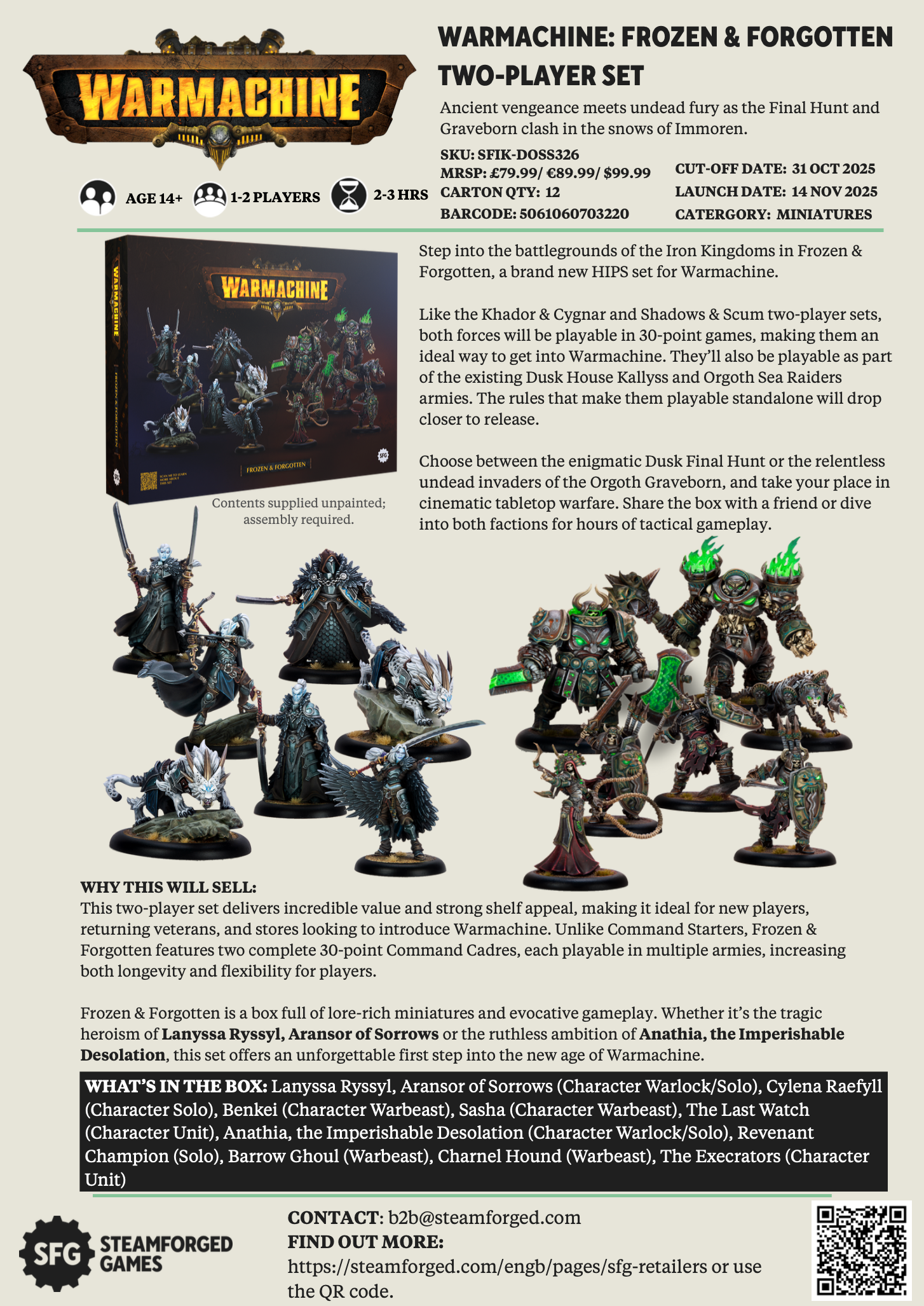 In the frozen wilds of western Immoren, vengeance and death march to war. Across the blizzard-swept wastes, two forces; one living, one long dead, are set to collide in battles that will decide the fate of more than just the snow-choked frontier.