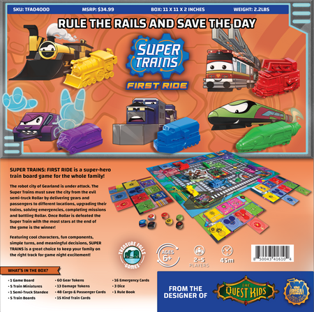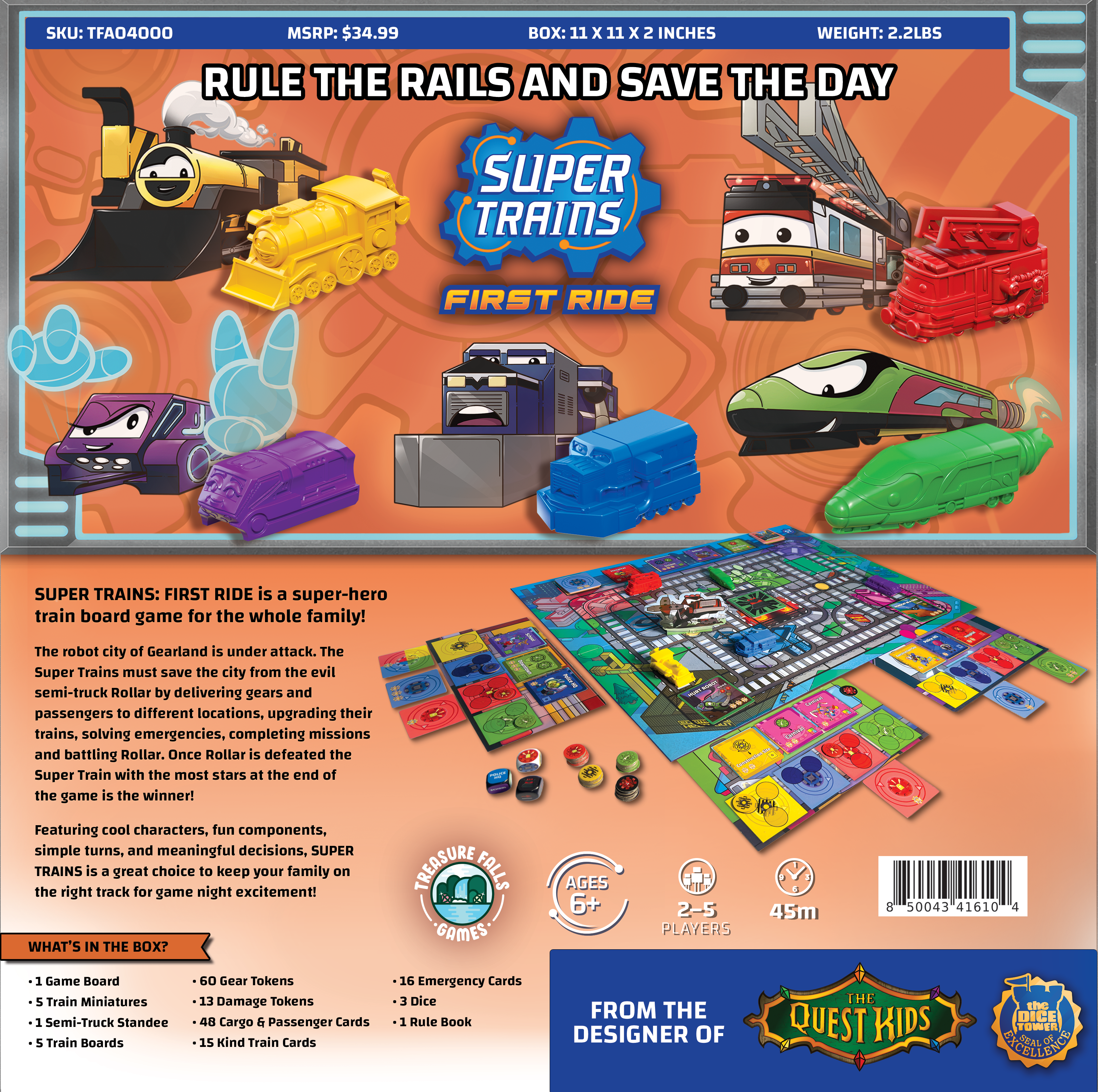 Featuring cool characters, fun components, simple turns, and meaningful decisions, Super Trains: First Ride is a great choice to keep your family on the right track for game night excitement!