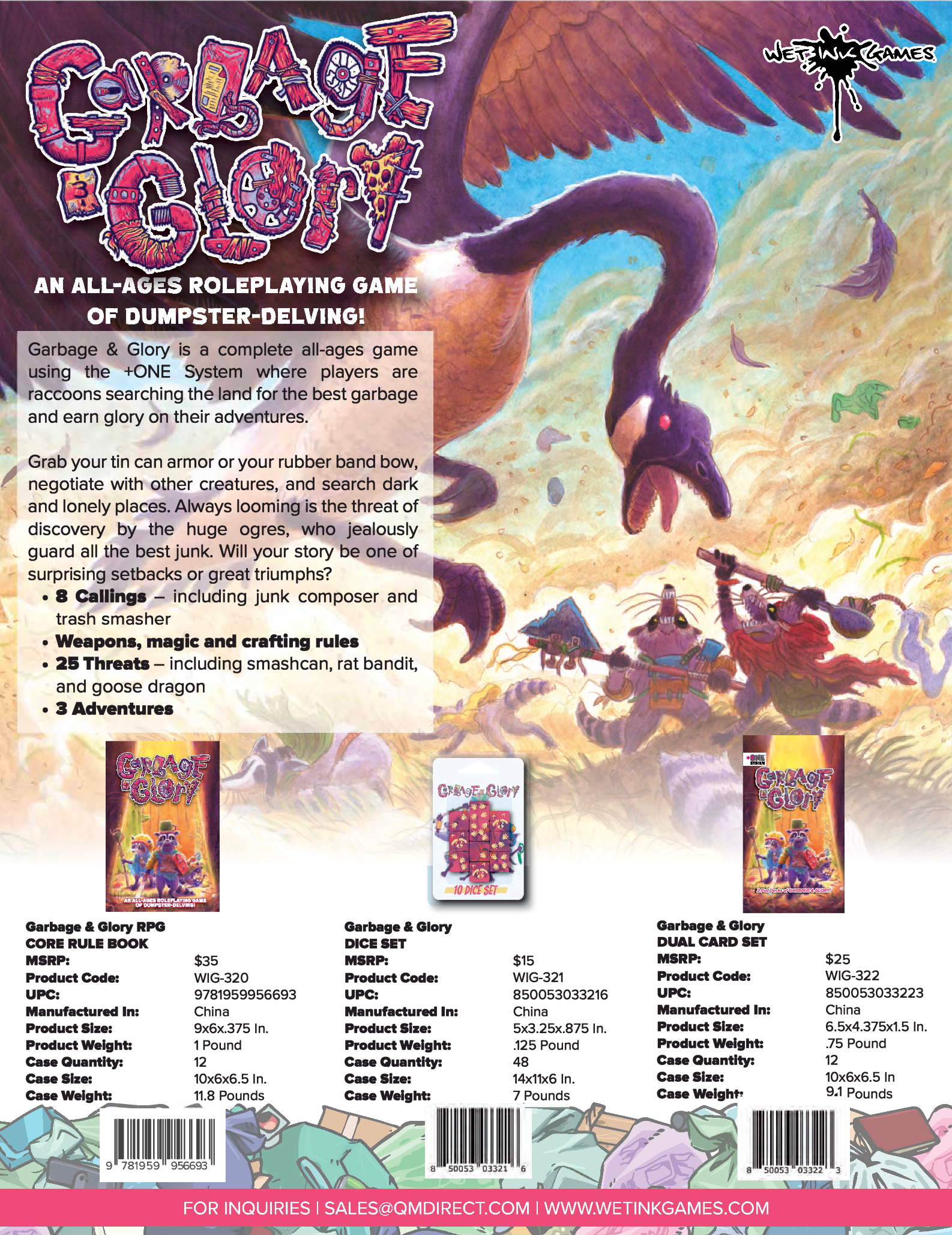 A set of ten engraved dice, designed specifically for the Garbage & Glory RPG.