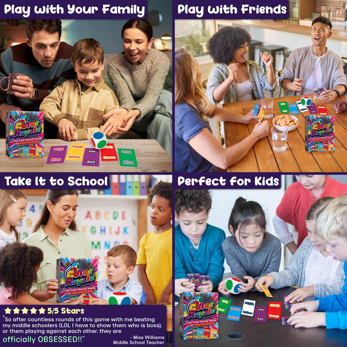 Play the classic Color Royale, turn it up a notch with Speed Royale, strategize with Color Matchmaker, or really put your brain to the test with Tongue Twister!